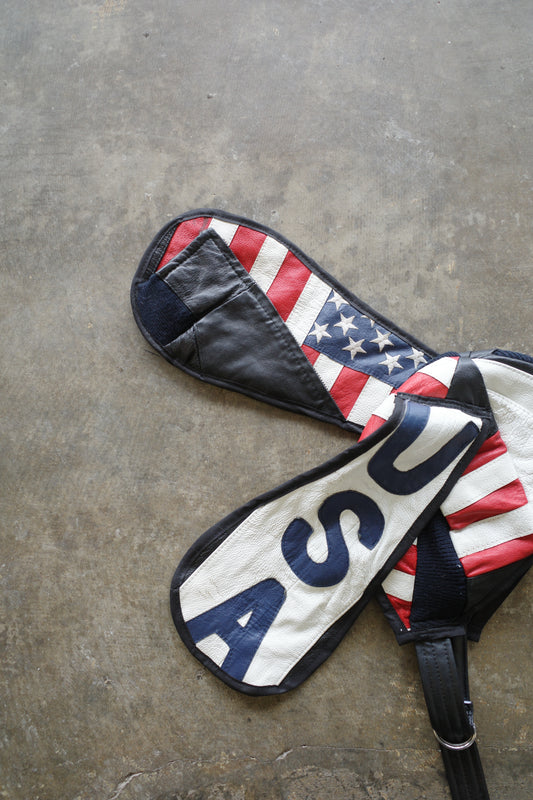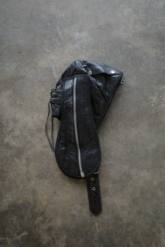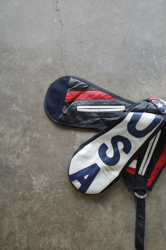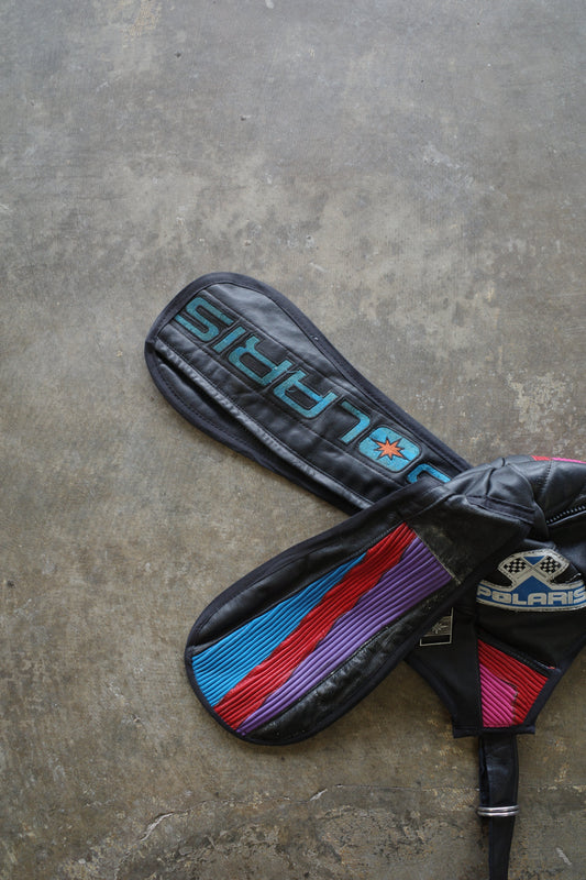 nag nag Bunny Ear Hat made with vintage POLARIS leather biker coverall