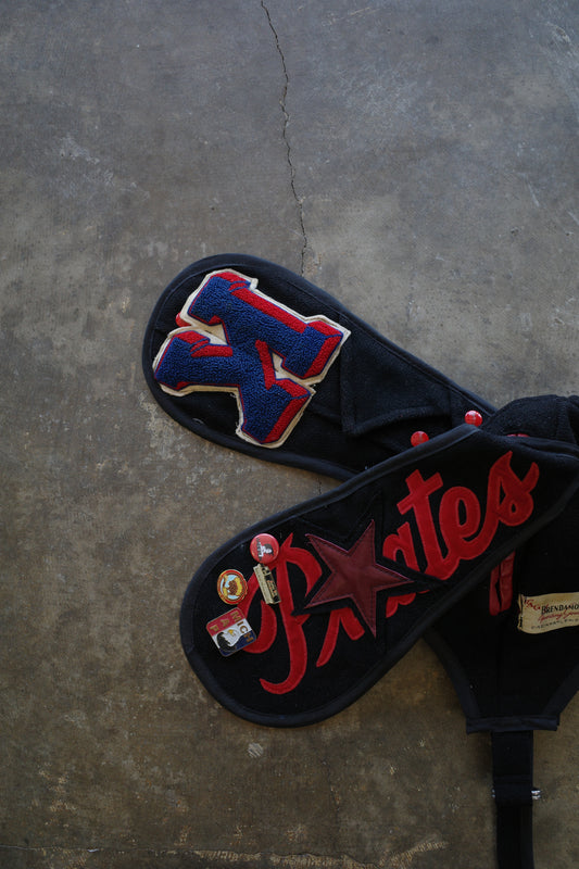 nag nag Bunny Ear Hat made with vintage Varsity Jacket and Patches&Pins