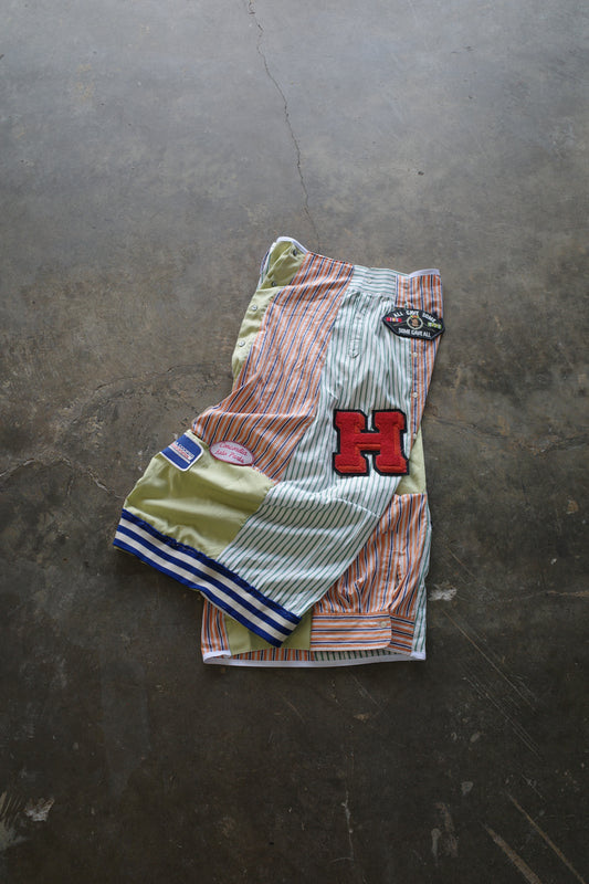 Wide Legged Patched Pants(L) / made with vintage mens striped shirt w vintage patches