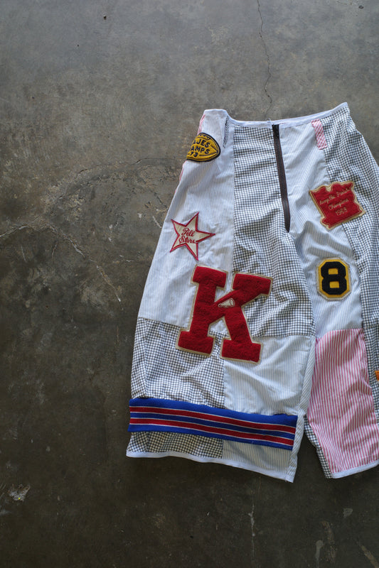 Wide Legged Patched Pants(S) / made with vintage mens striped shirt w vintage patches