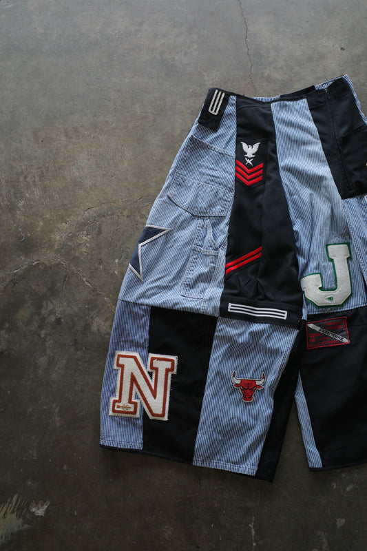 Wide Legged Patched Pants(S) / made with vintage ICON motorcycle jacket & vintage Patches
