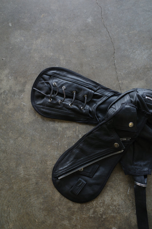 nag nag Bunny Ear Hat made with vintage Leather biker jacket