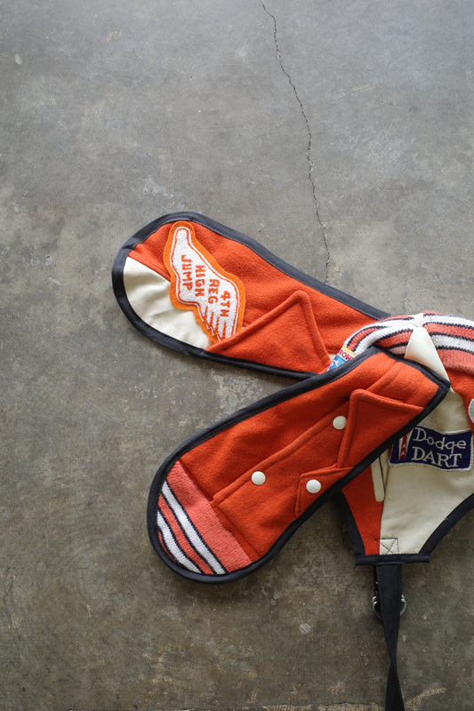nag nag Bunny Ear Hat made with vintage Varsity Jacket and Patches