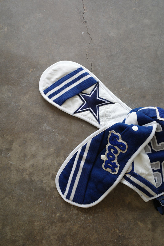 nag nag Bunny Ear Hat made with vintage Varsity Jacket and Patches