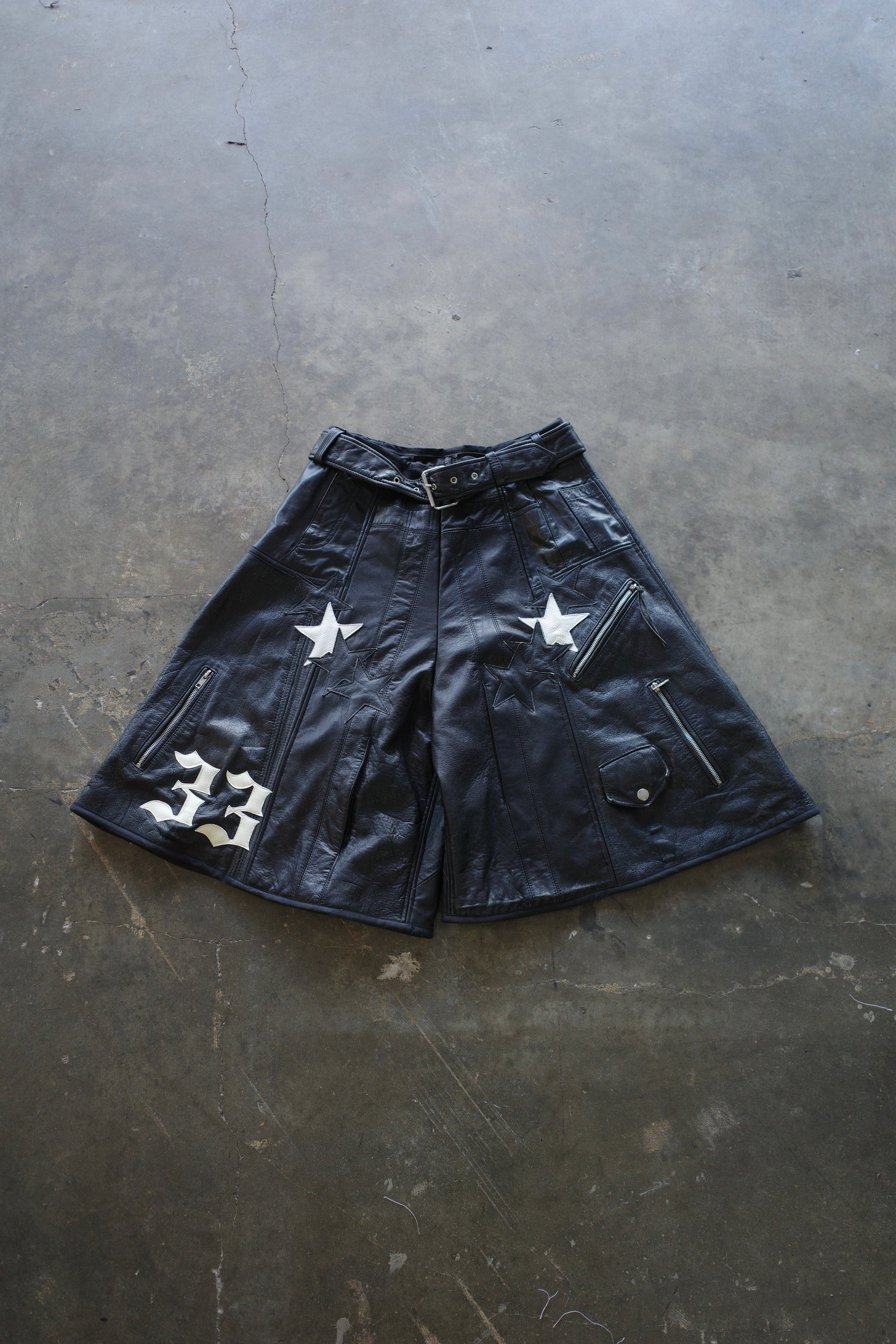 33 leather baggy shorts (32)33BS1