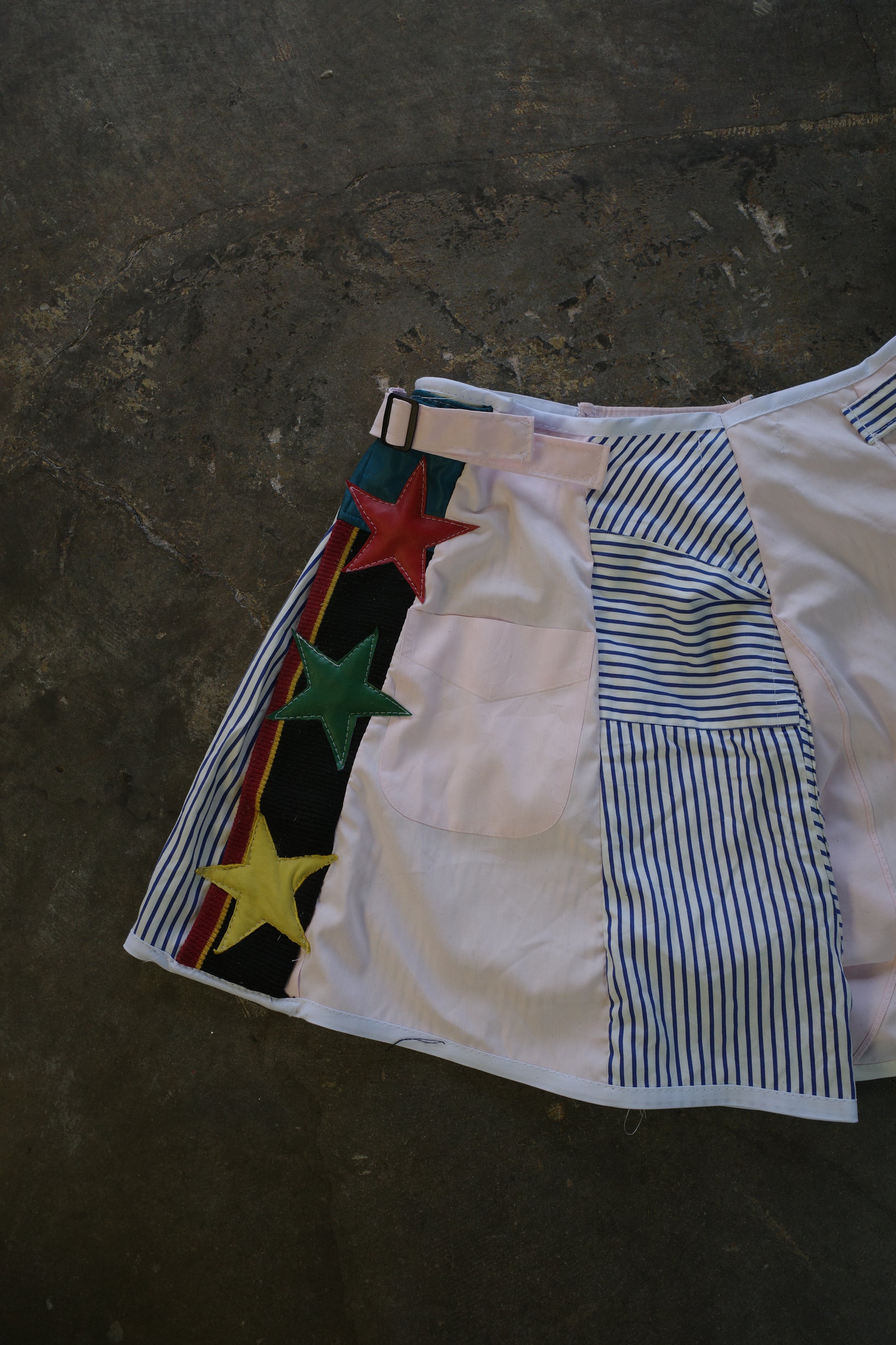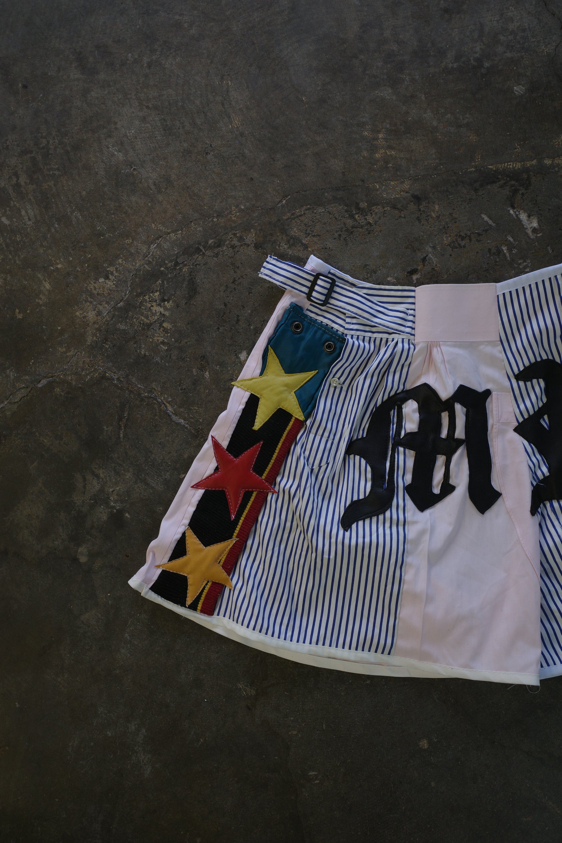 "The MR.Shorts"made with vintage stripe shirt & 3R. original leather patch