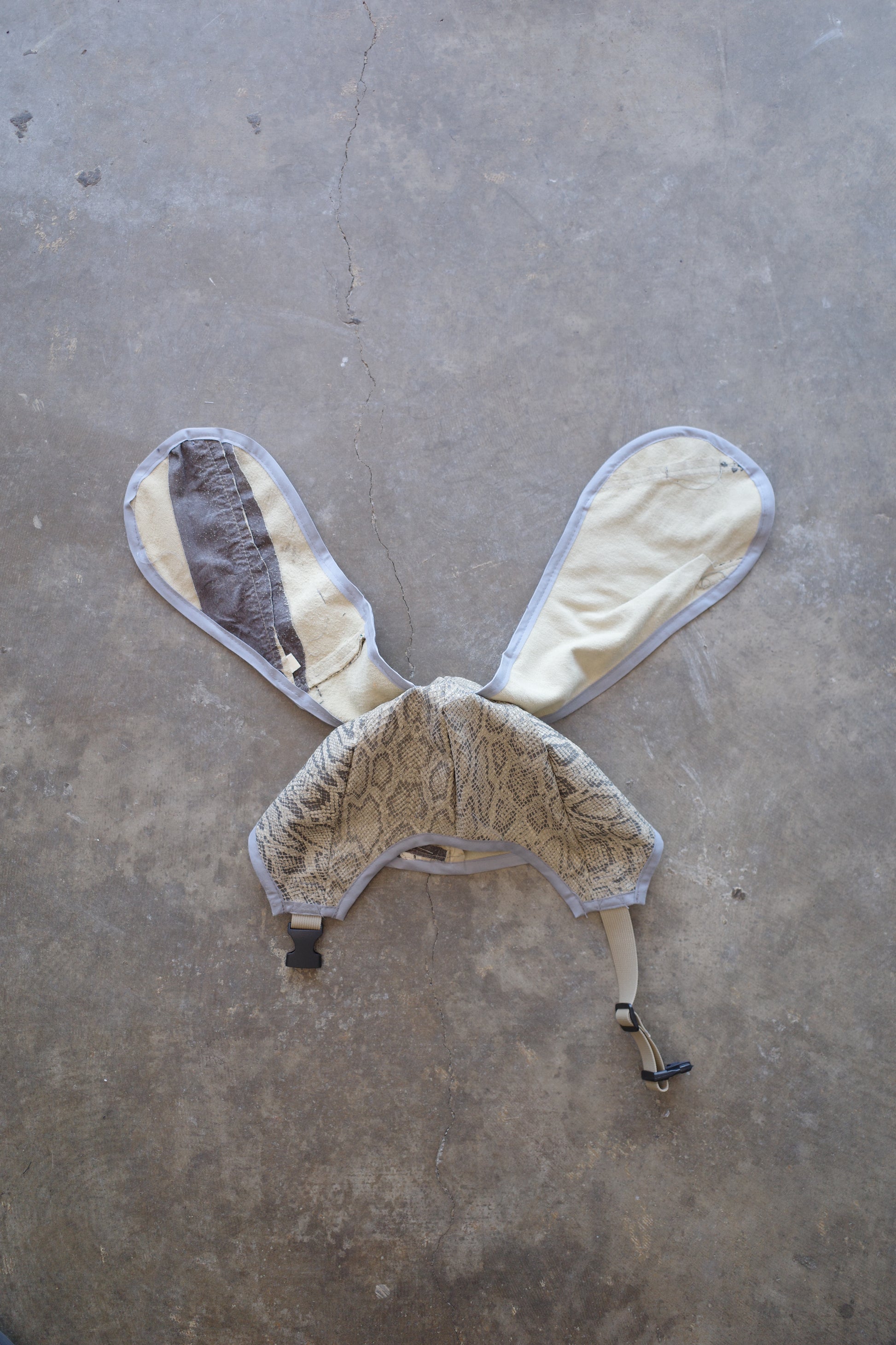 nag nag Bunny Ear Hat made with vintage Python pattern leather jacket