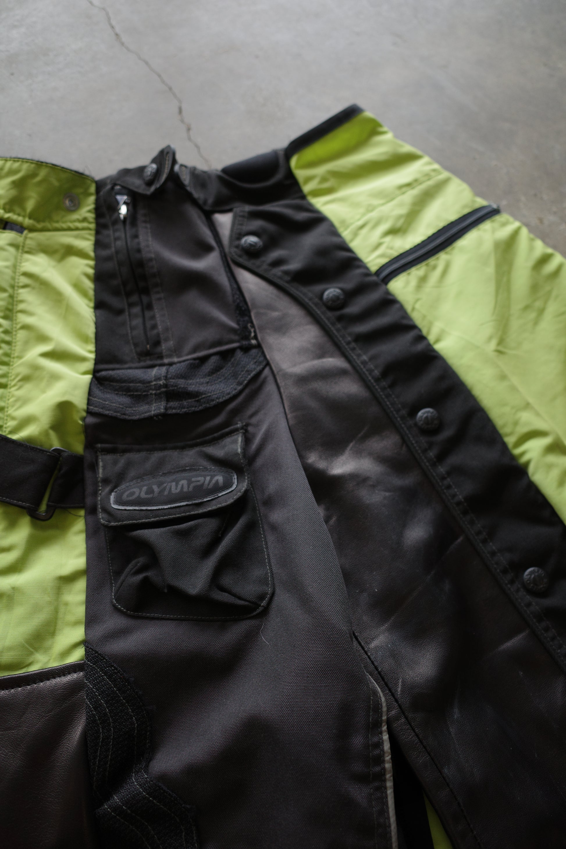 made with vintage KAWASAKI racing pants&OLYMPIA racing and leather trim))made by MR.NAGGERS