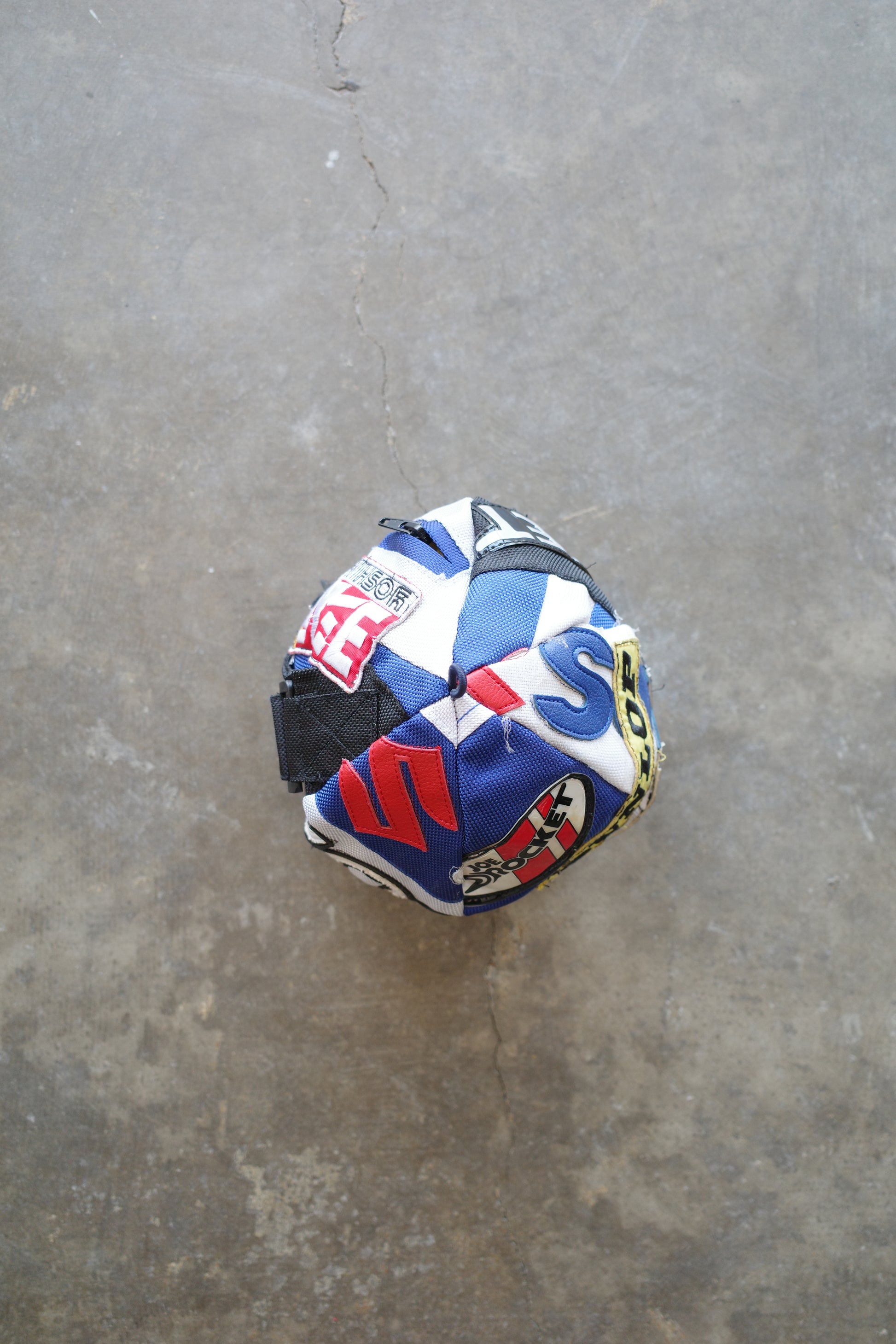 nag nag Ball Bag(S) made from vintage motorcycle pants & lots patches