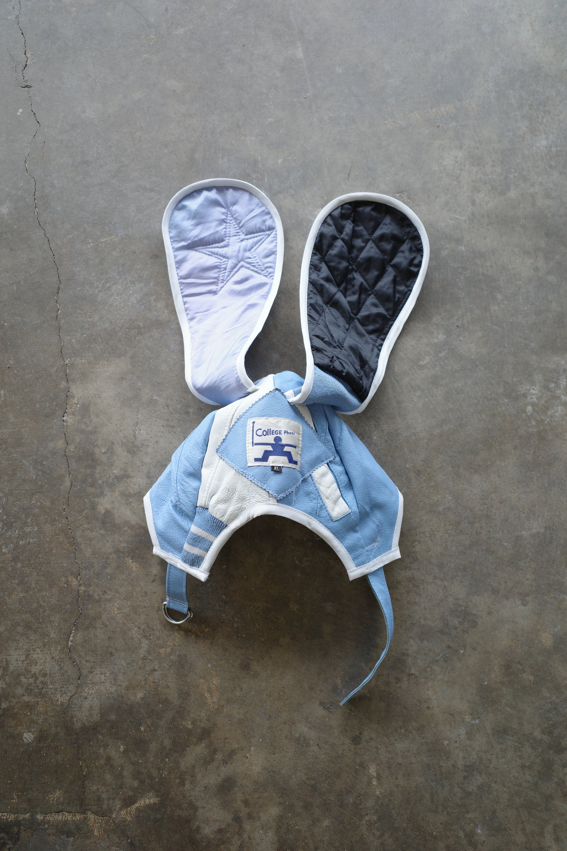 nag nag Bunny Ear Hat made with 1990s vintage Leather varsity jacket