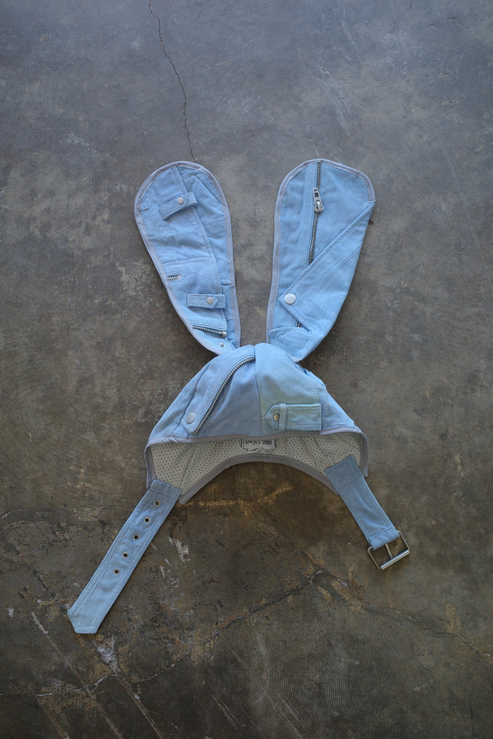 nag nag Bunny Ear Hat made with vintage light blue suede leather biker jacket