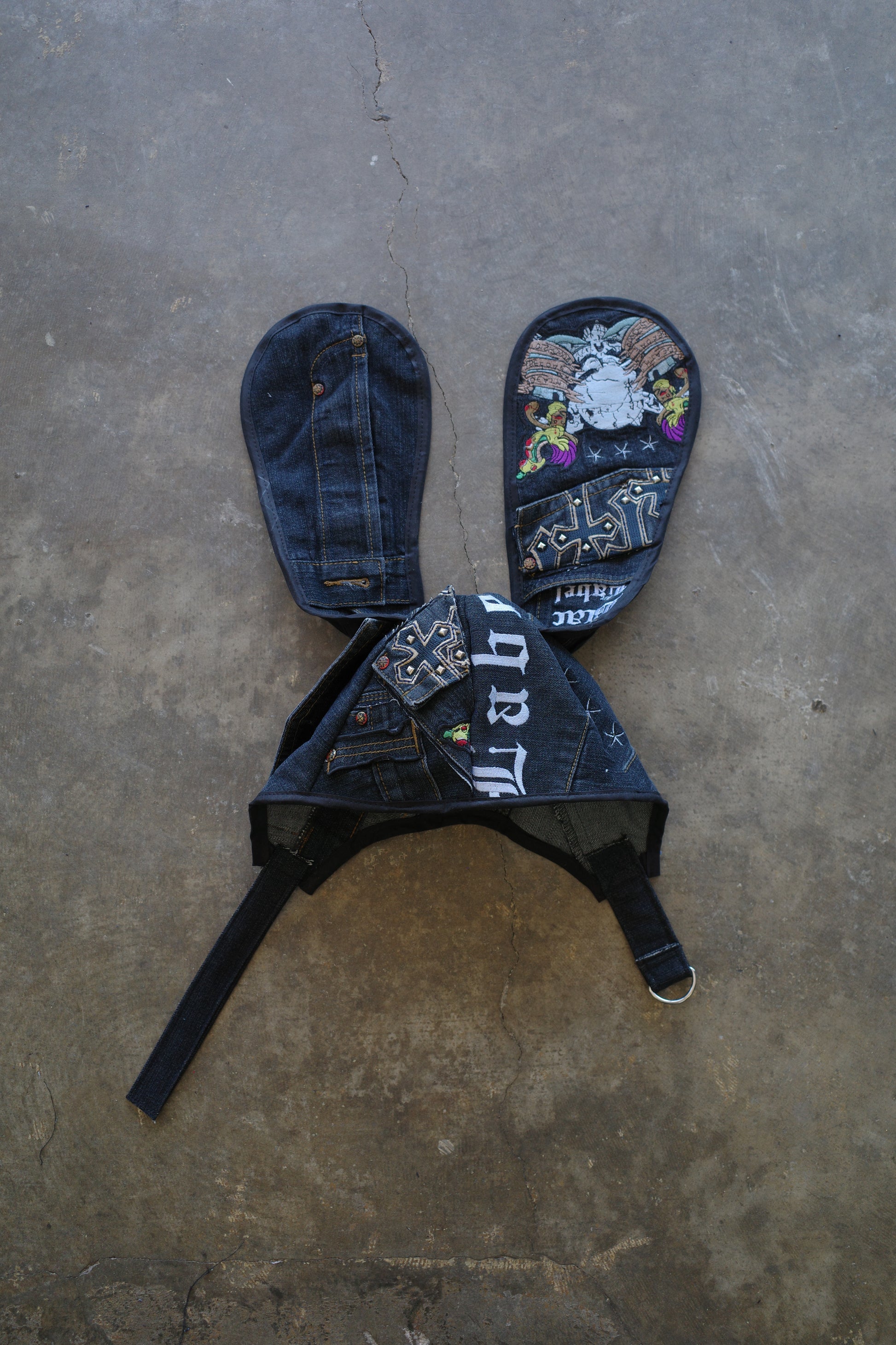 nag nag Bunny Ear Hat made with vintage baggy jeans