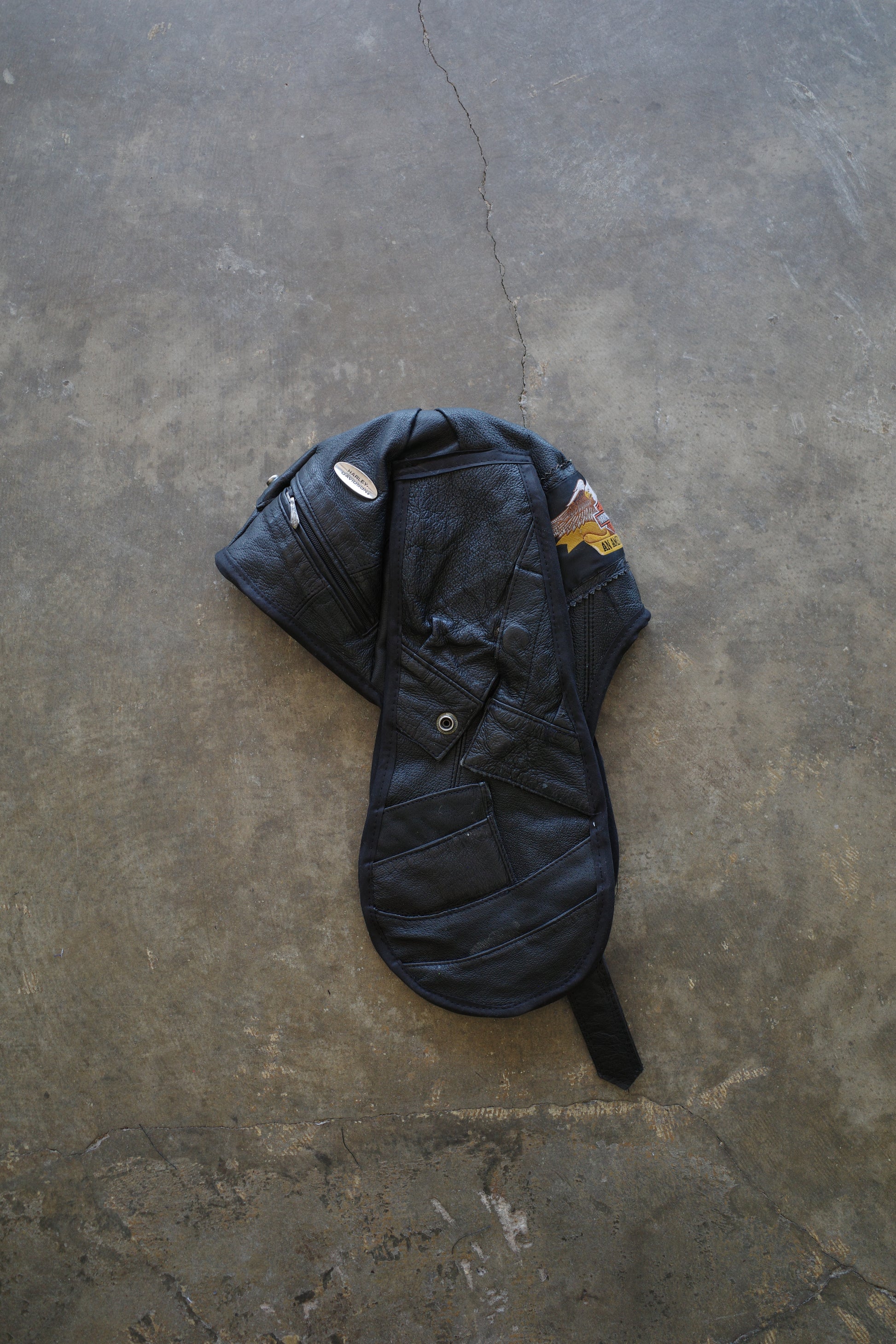 nag nag Bunny Ear Hat made with vintage Harley Davidson Leather Biker jacket