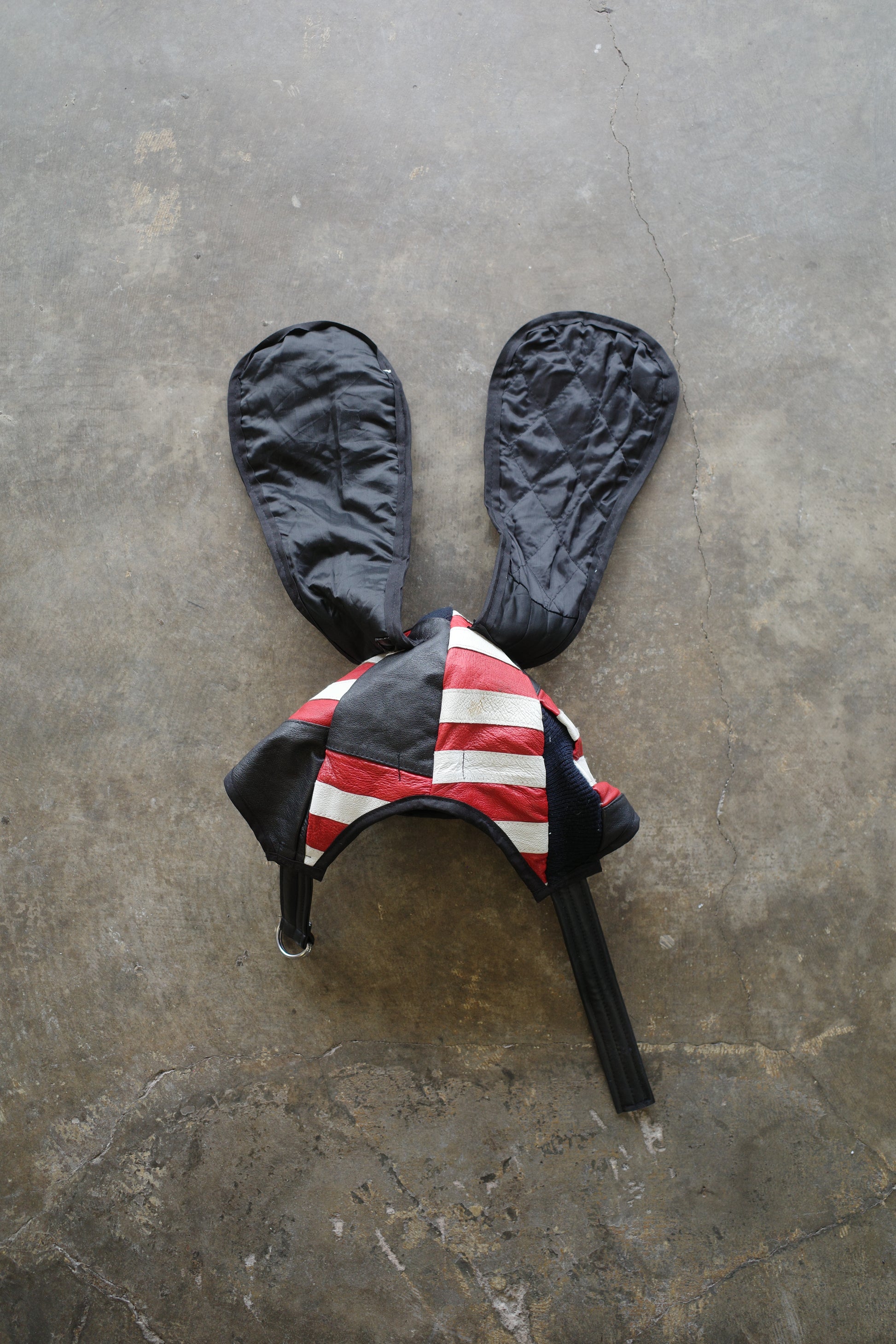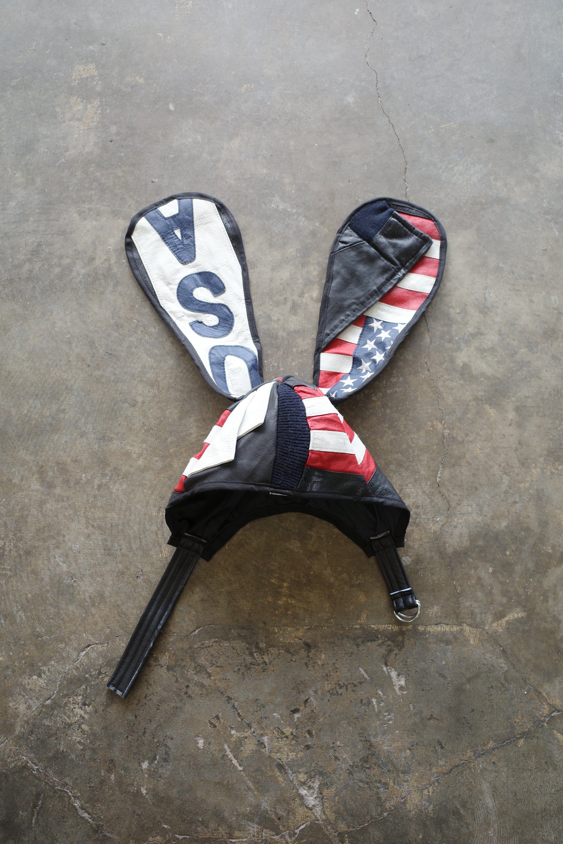 nag nag Bunny Ear Hat made with vintage Leather jacket