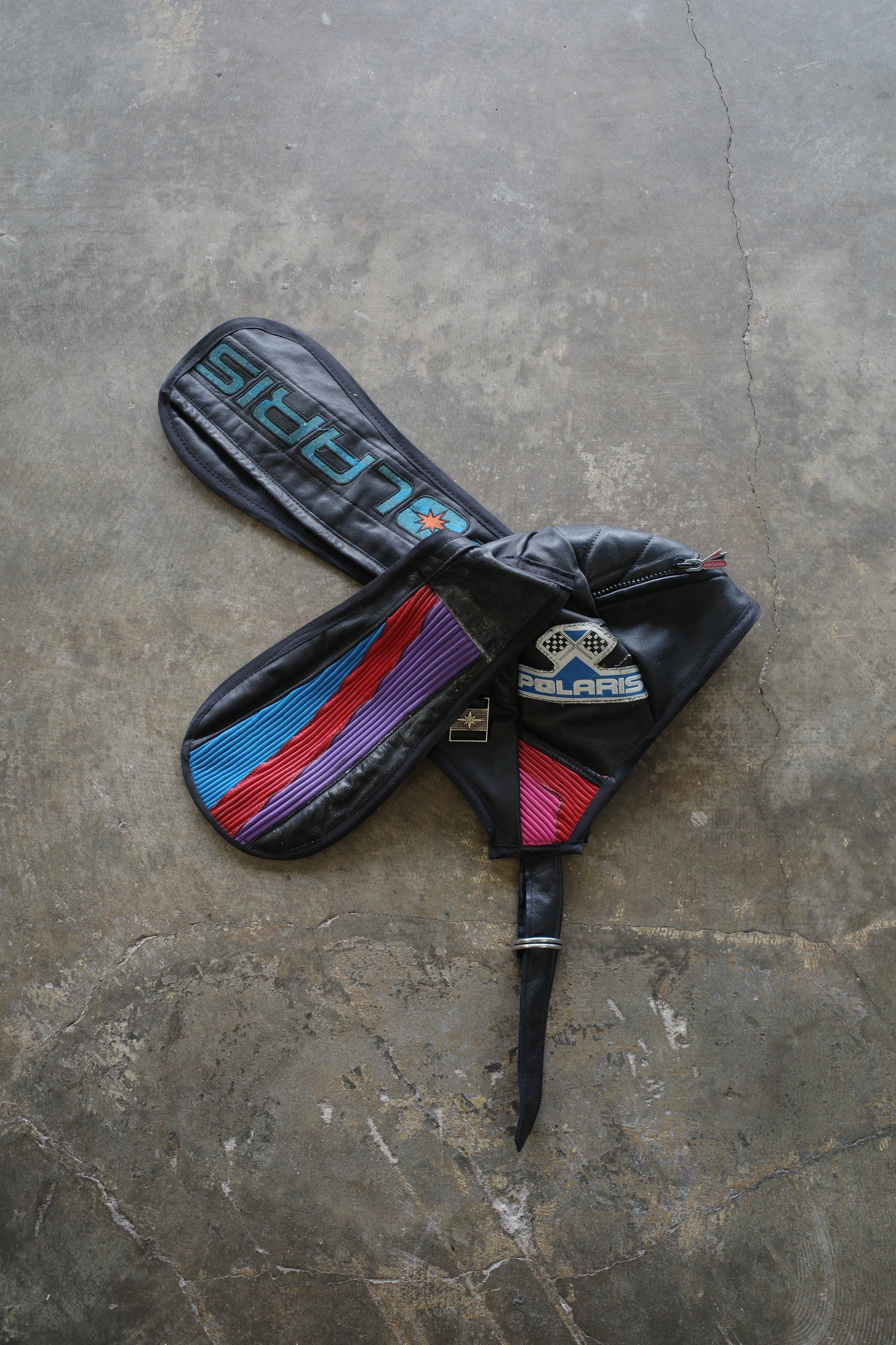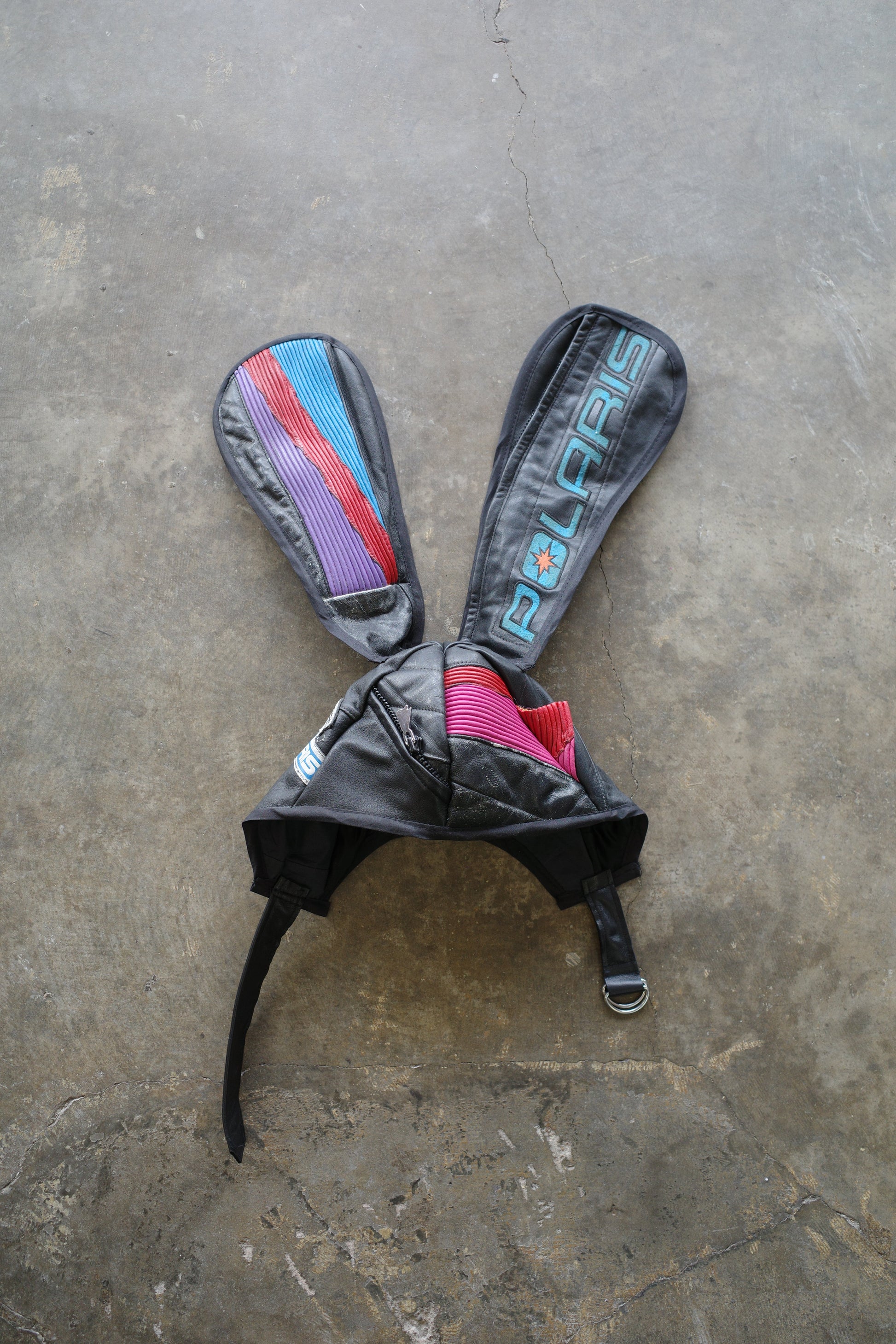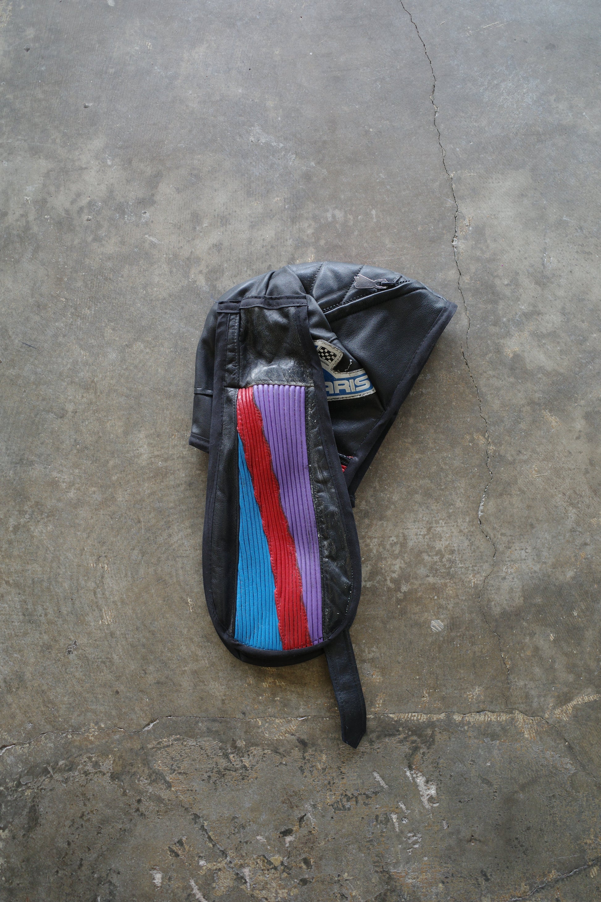 nag nag Bunny Ear Hat made with vintage POLARIS leather biker coverall