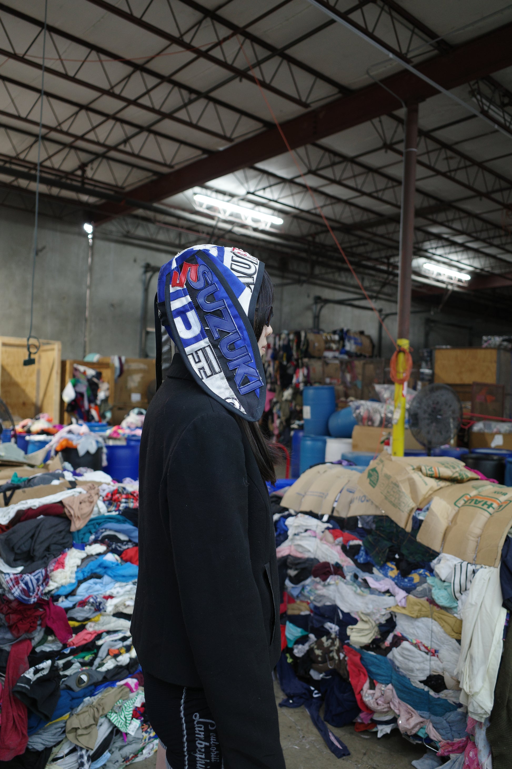 nag nag Bunny Ear Hat made with vintage SUZUKI motorcycle pants