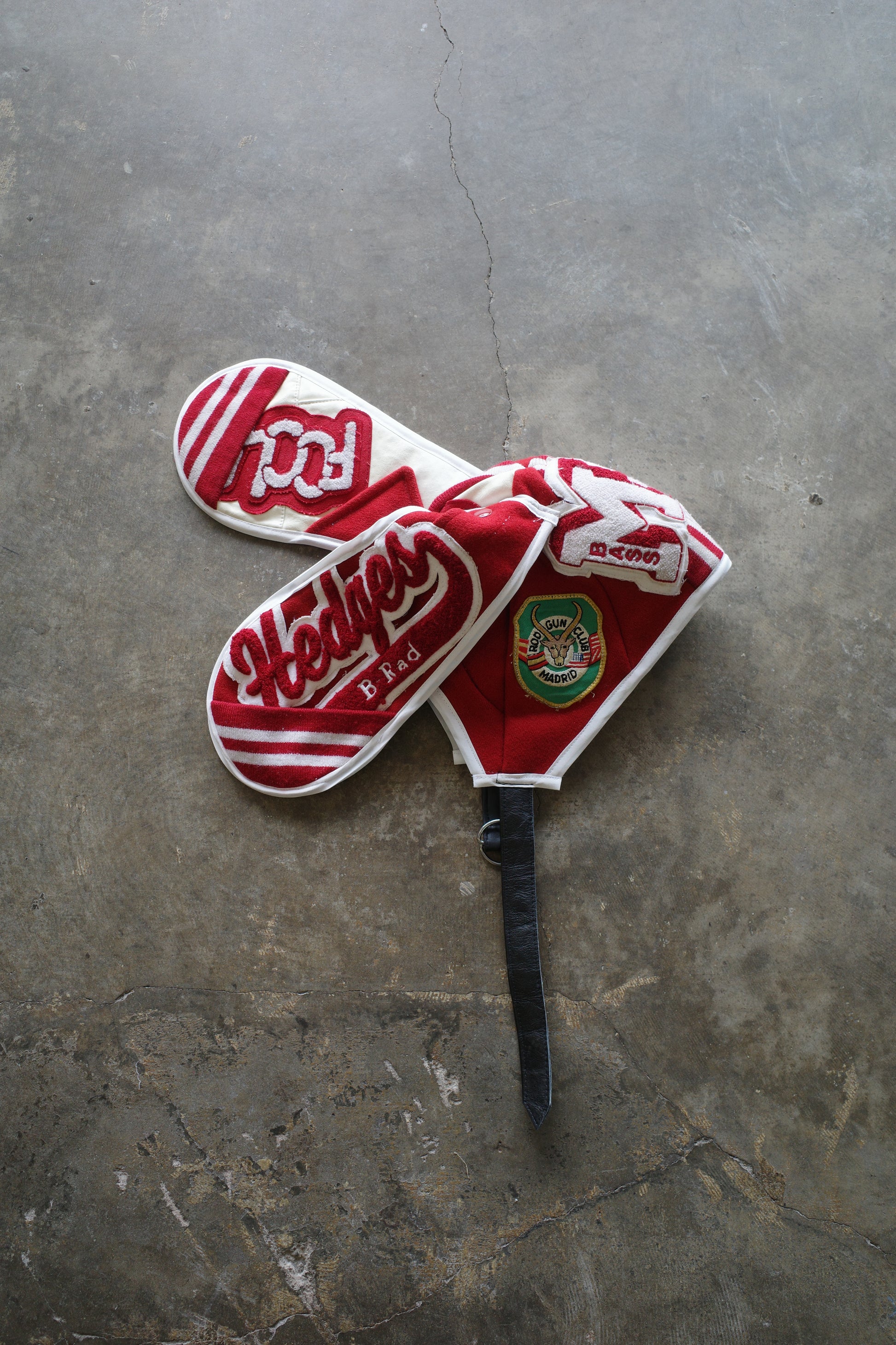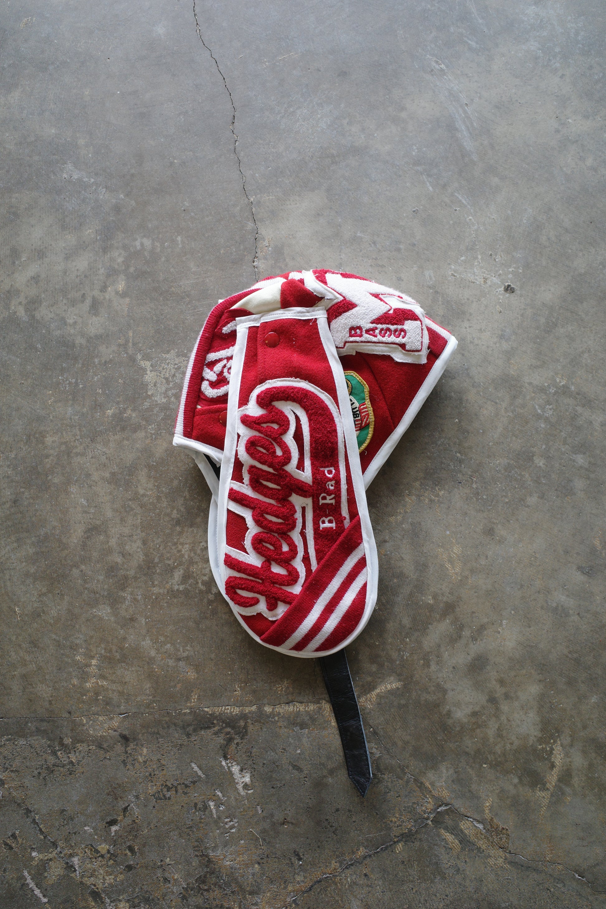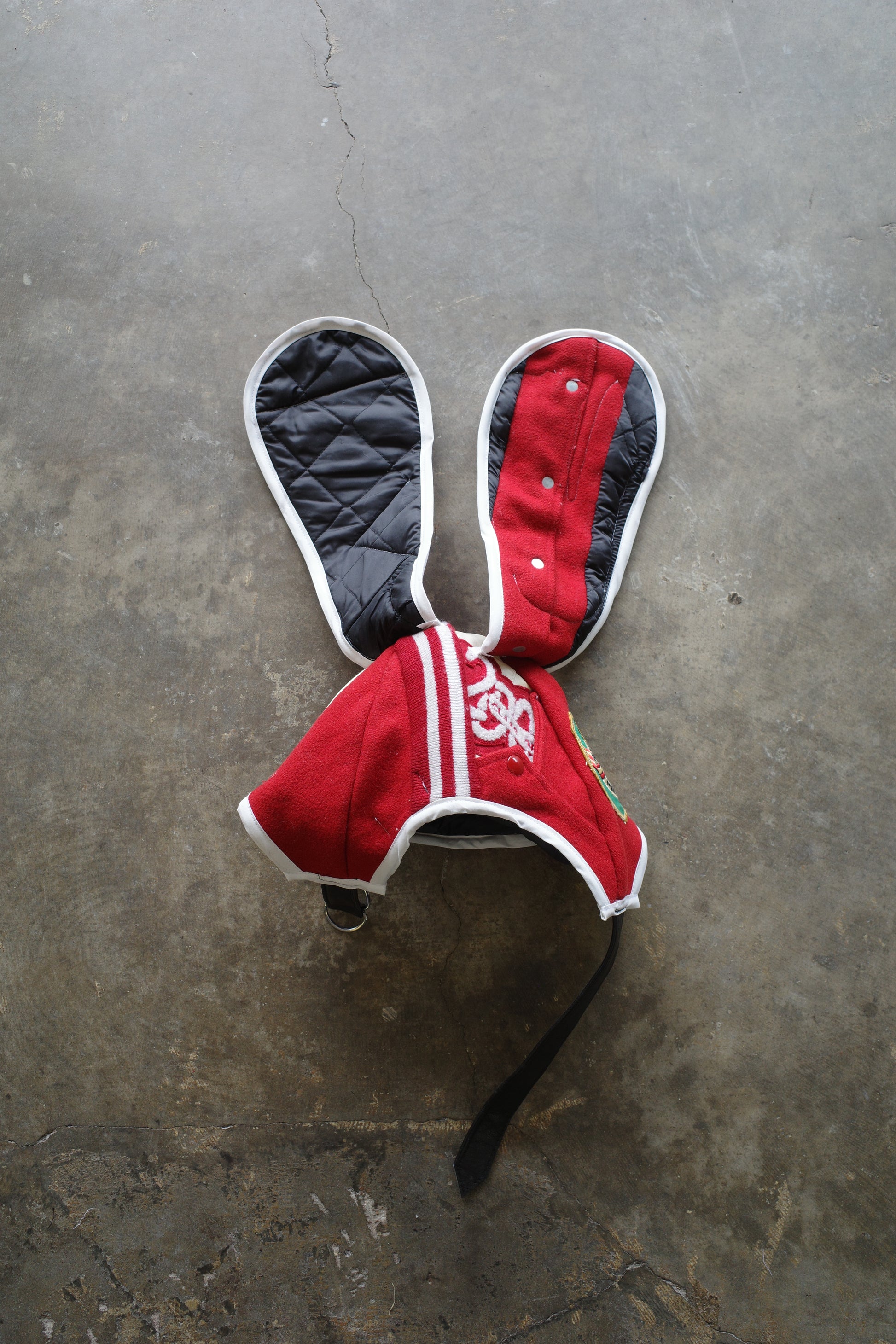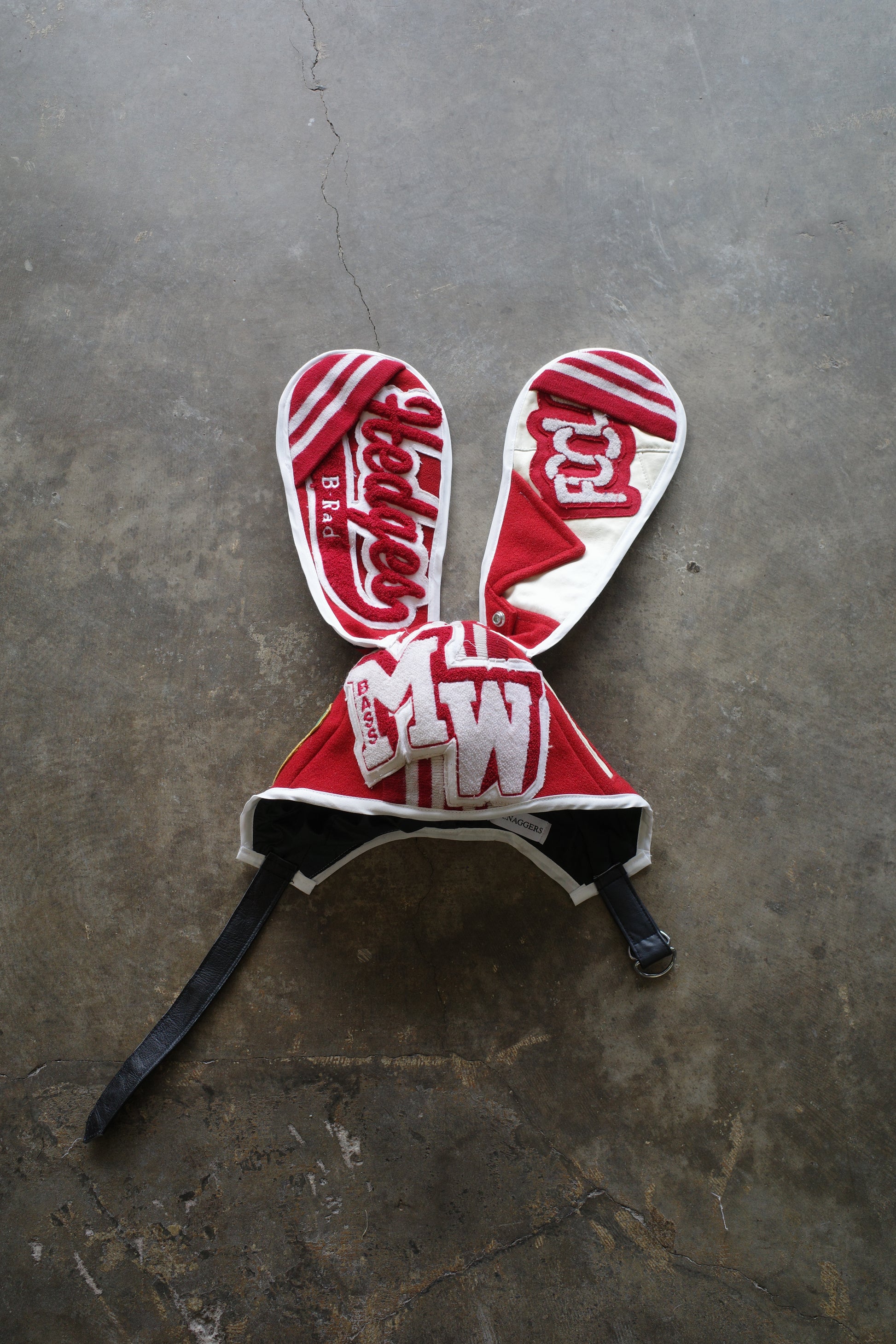 nag nag Bunny Ear Hat made with vintage Varsity Jacket and Patches