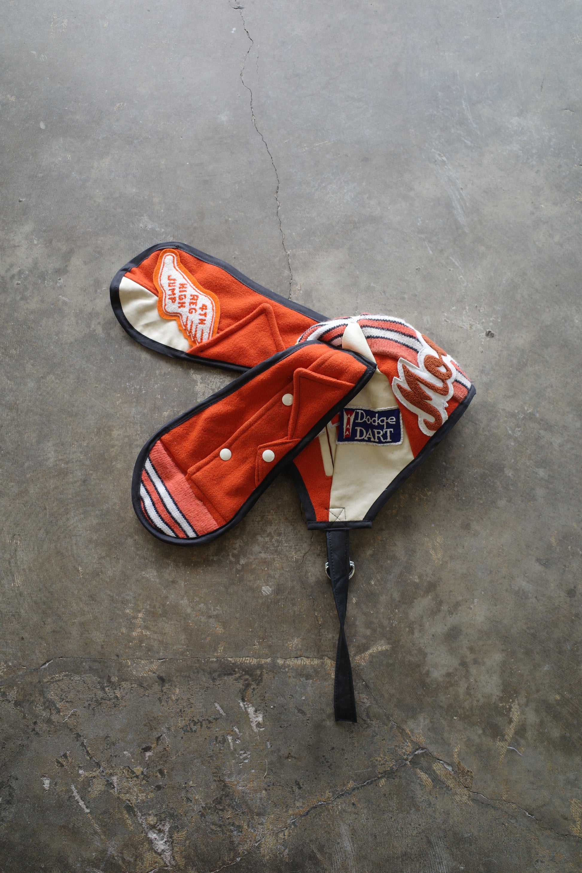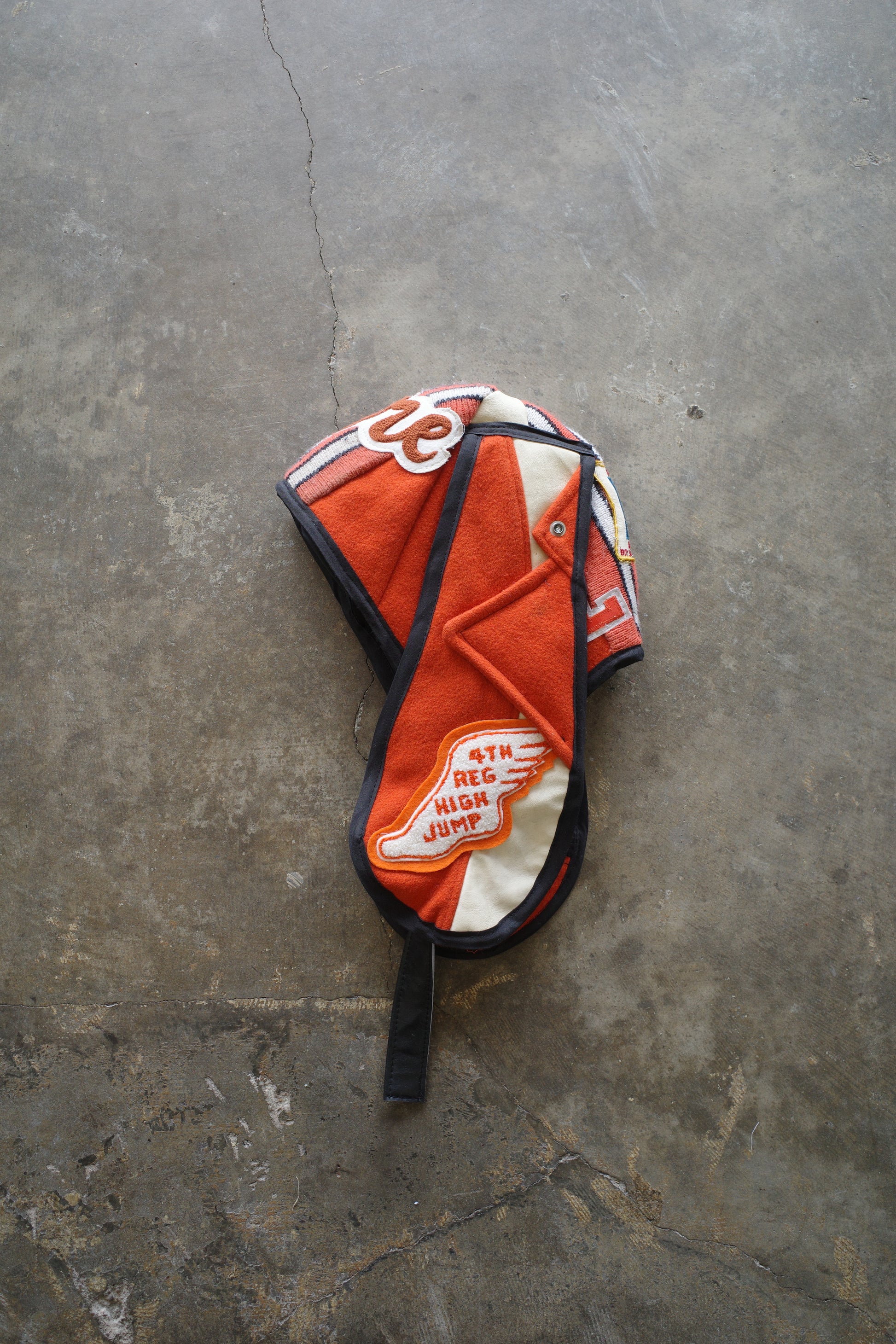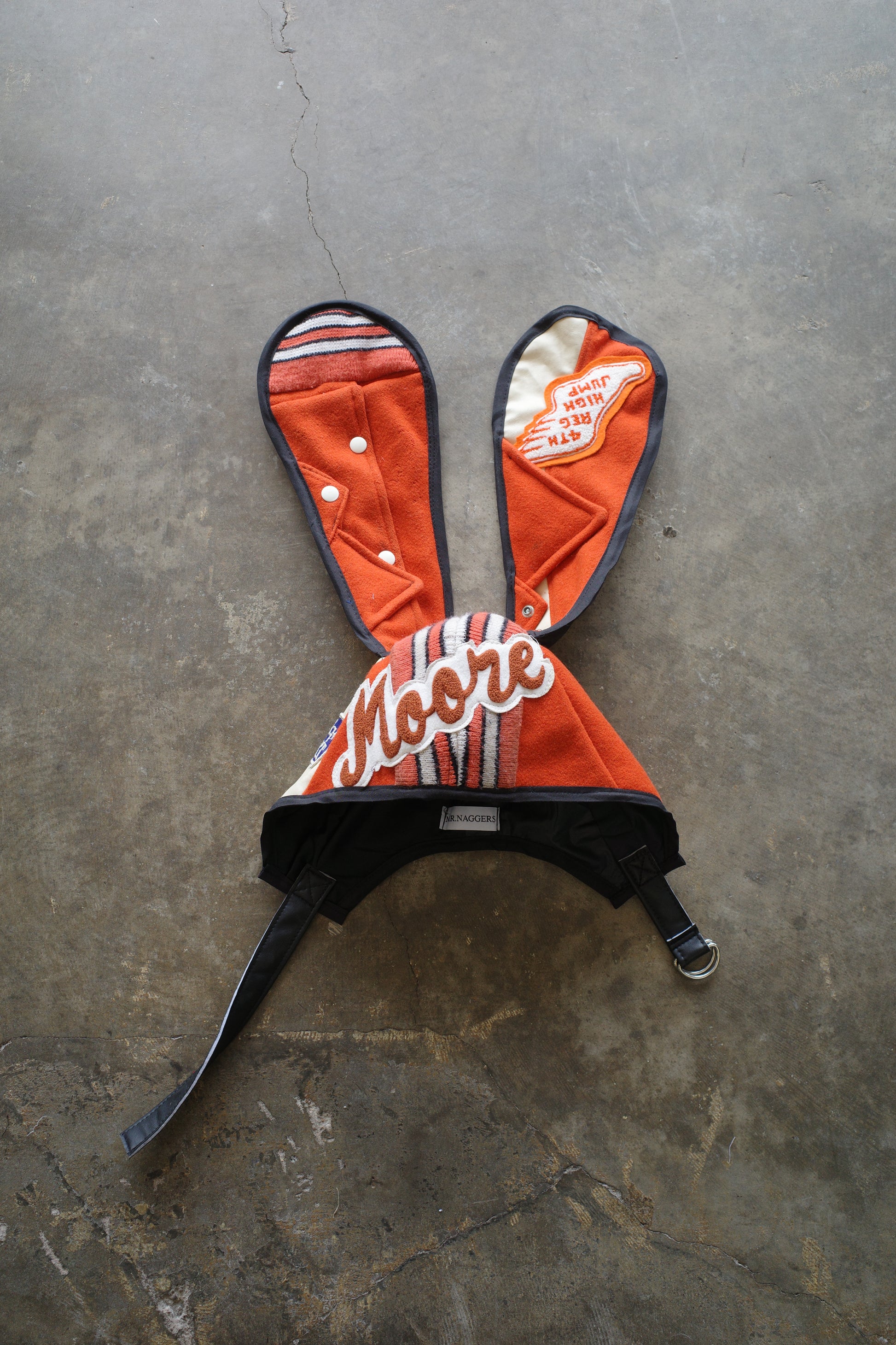 nag nag Bunny Ear Hat made with vintage Varsity Jacket and Patches
