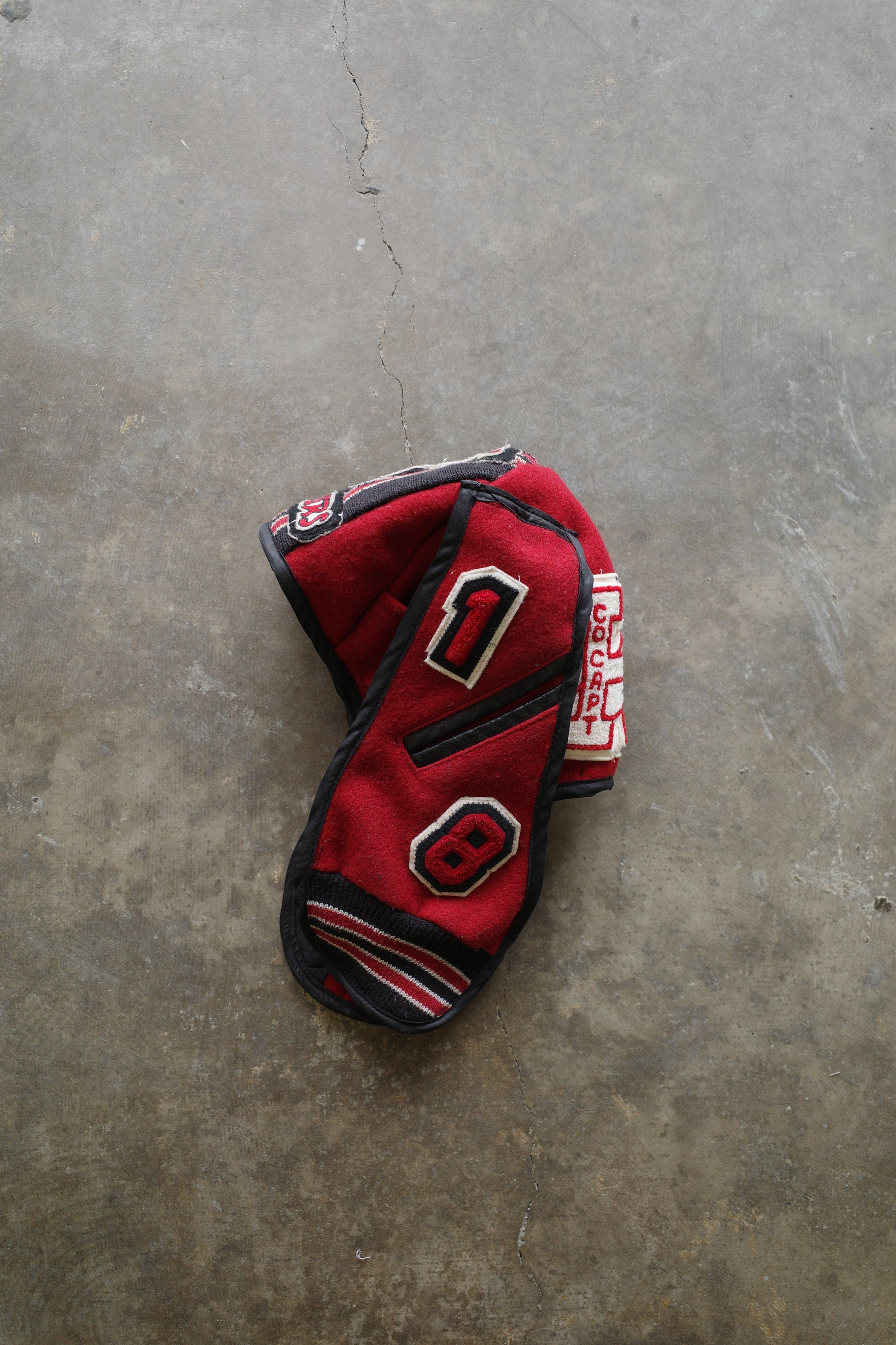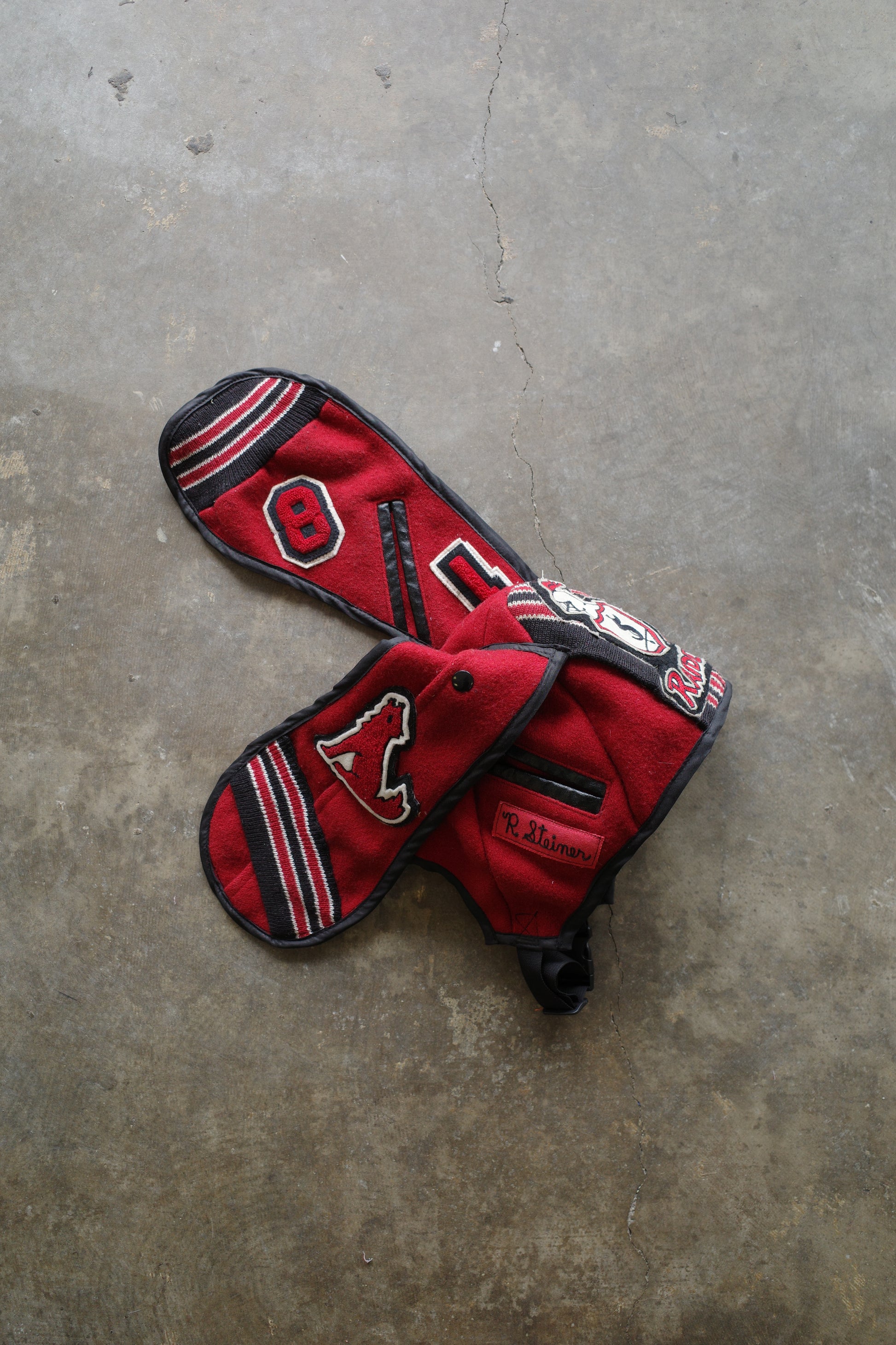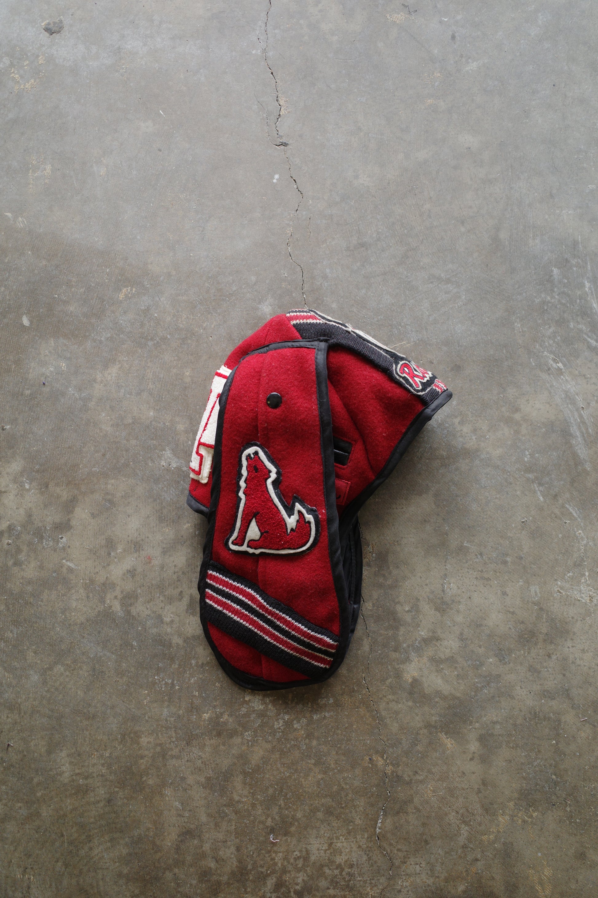 nag nag Bunny Ear Hat made with vintage Varsity Jacket and Patches
