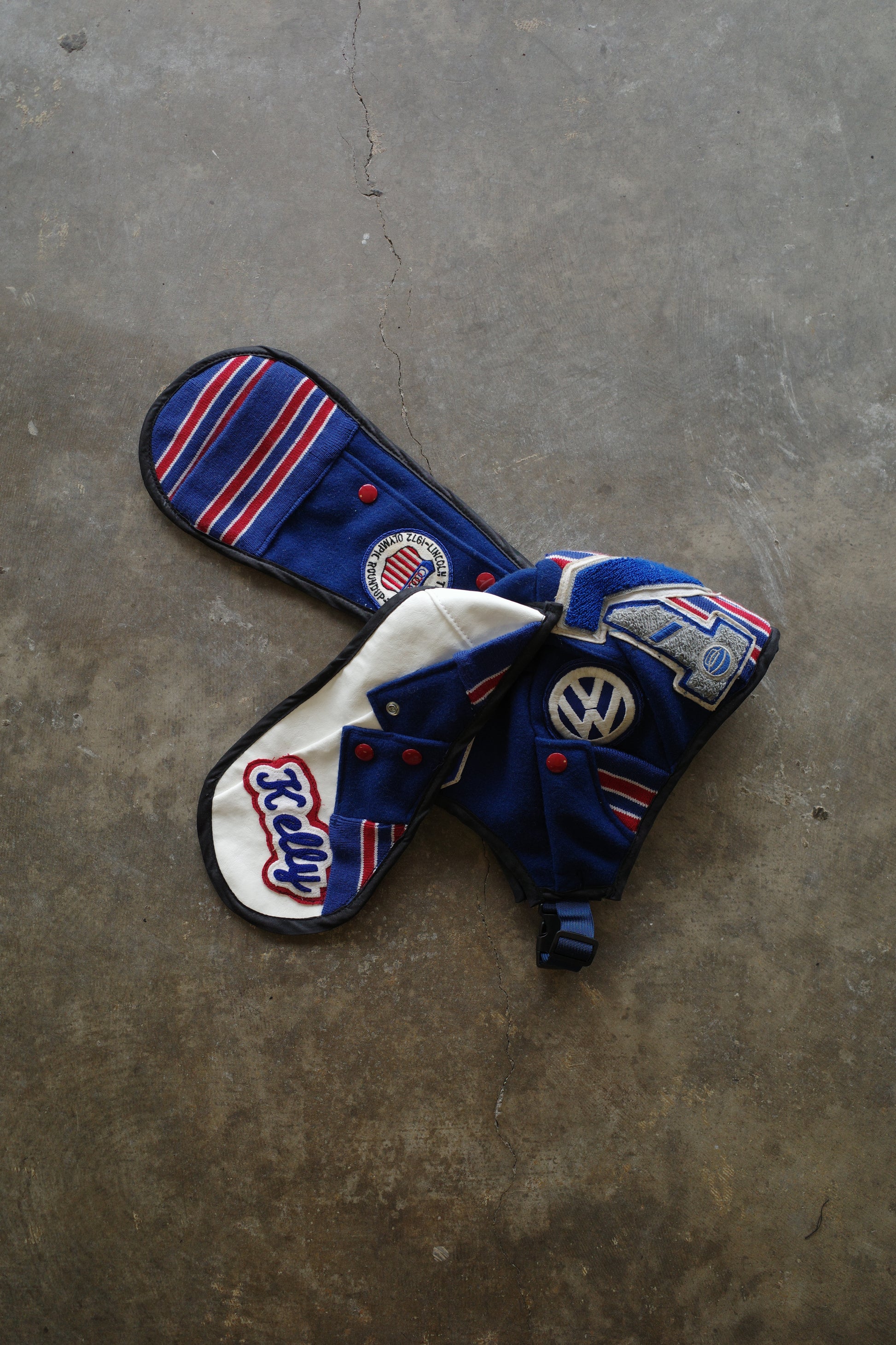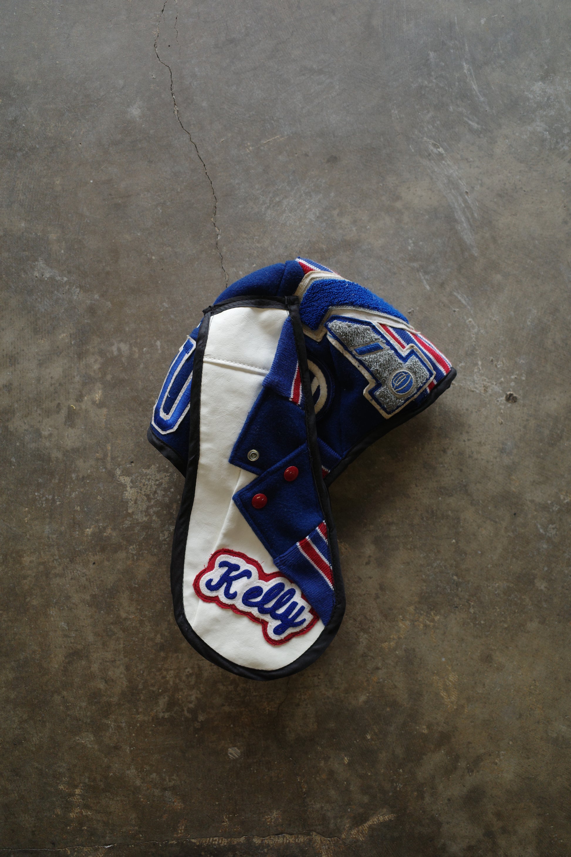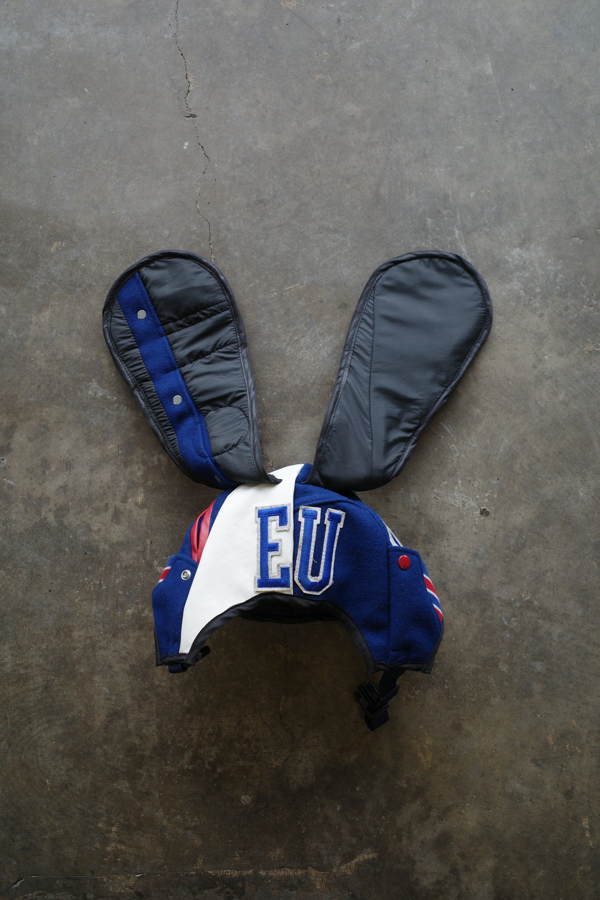 nag nag Bunny Ear Hat made with vintage Varsity Jacket and Patches