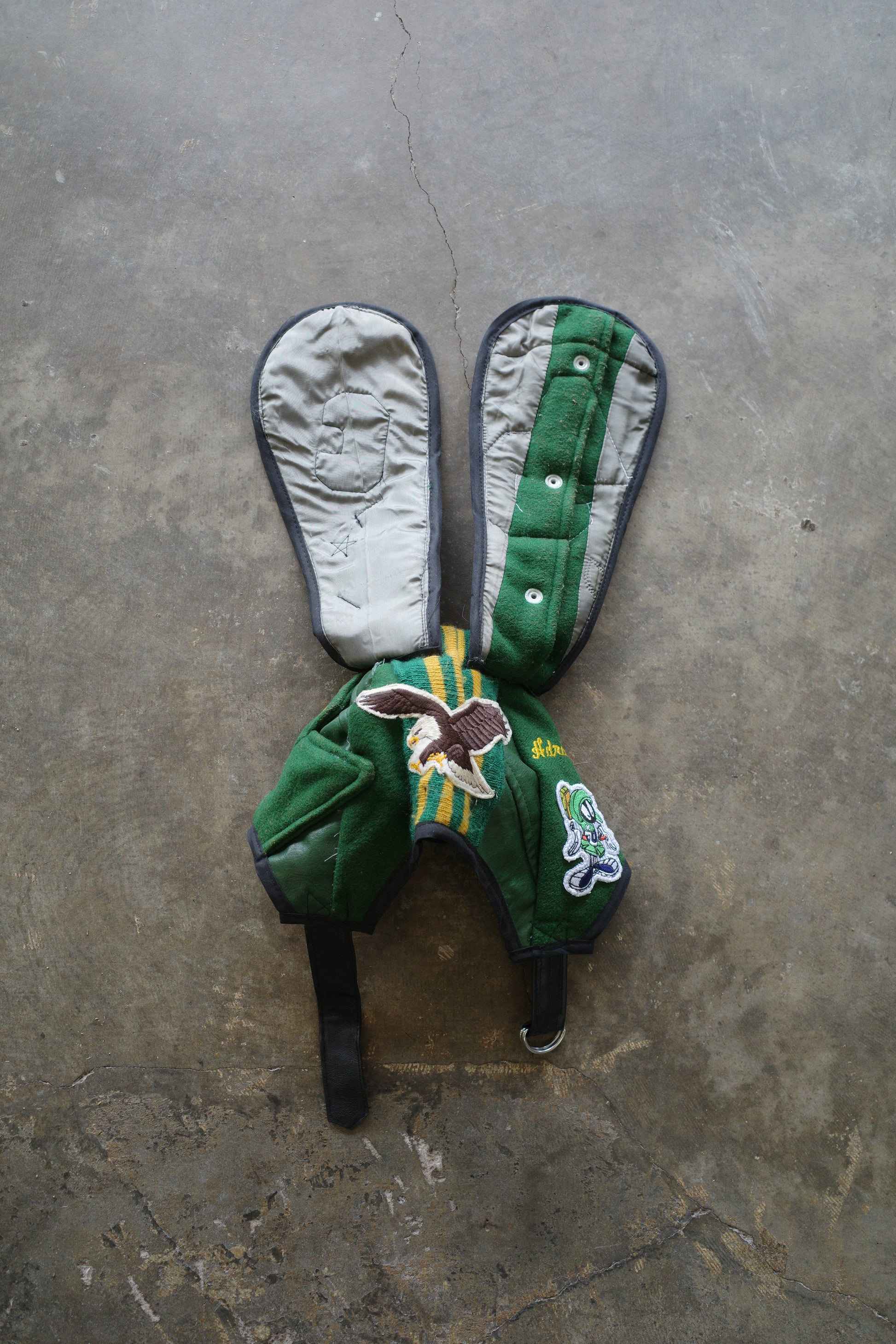 nag nag Bunny Ear Hat made with vintage Varsity Jacket and Patches
