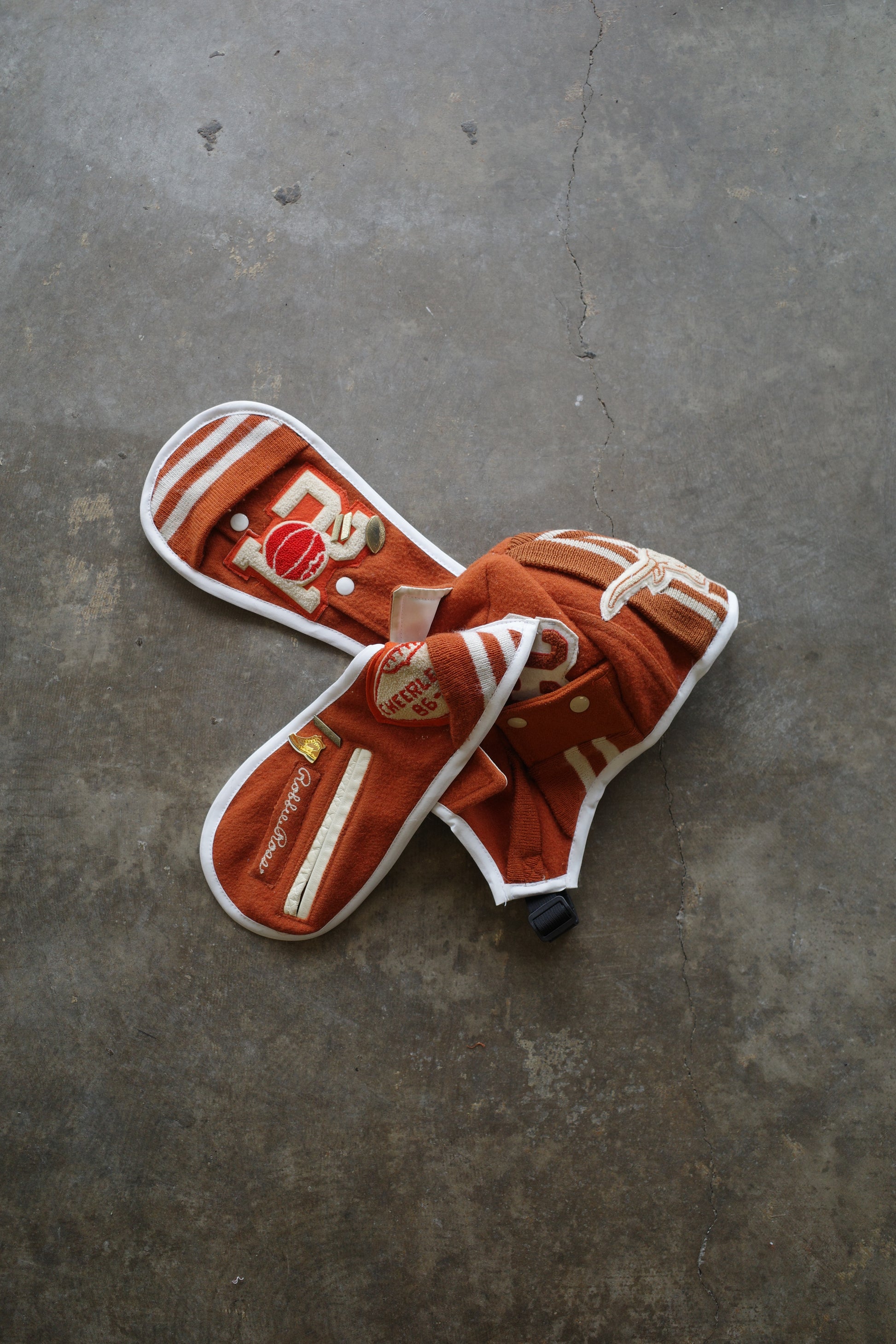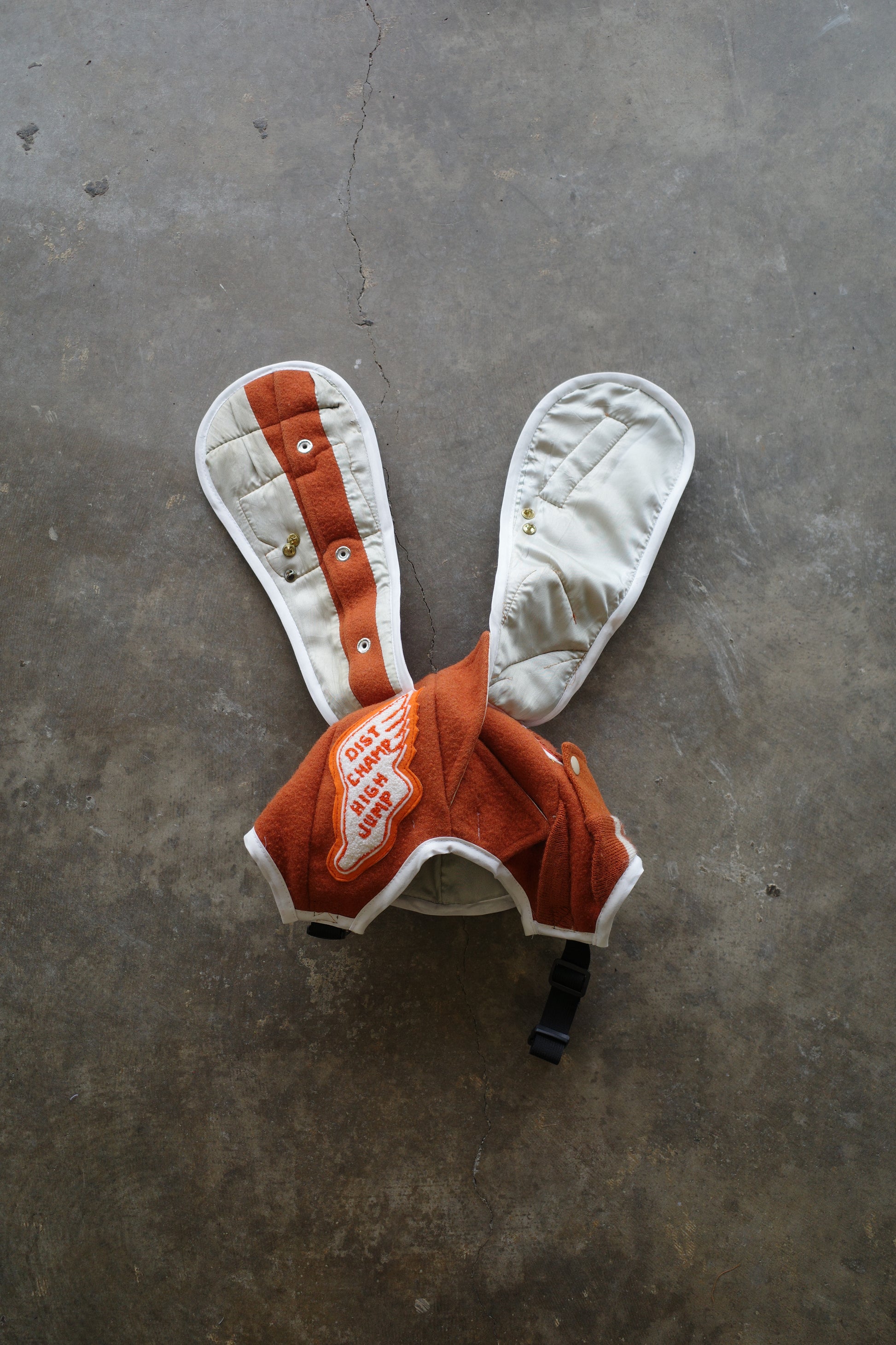 nag nag Bunny Ear Hat made with vintage Varsity Jacket and Patches&Pins