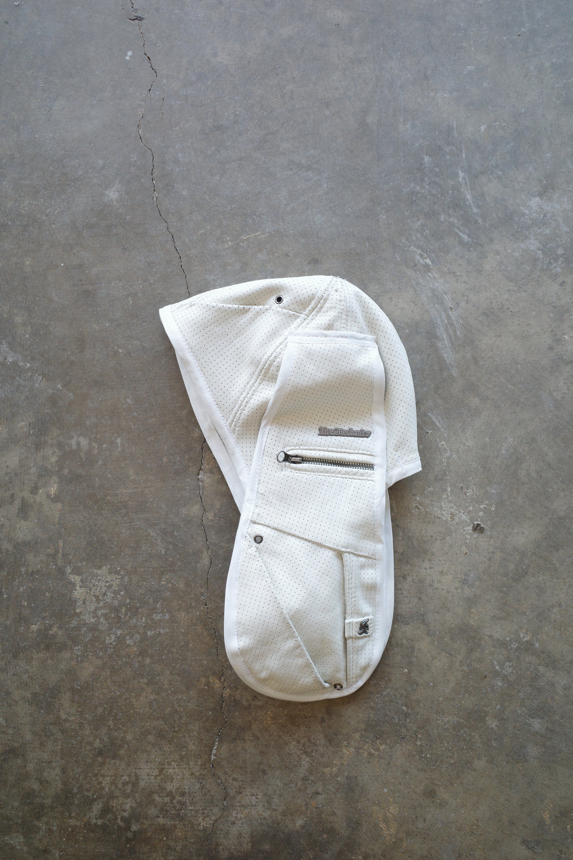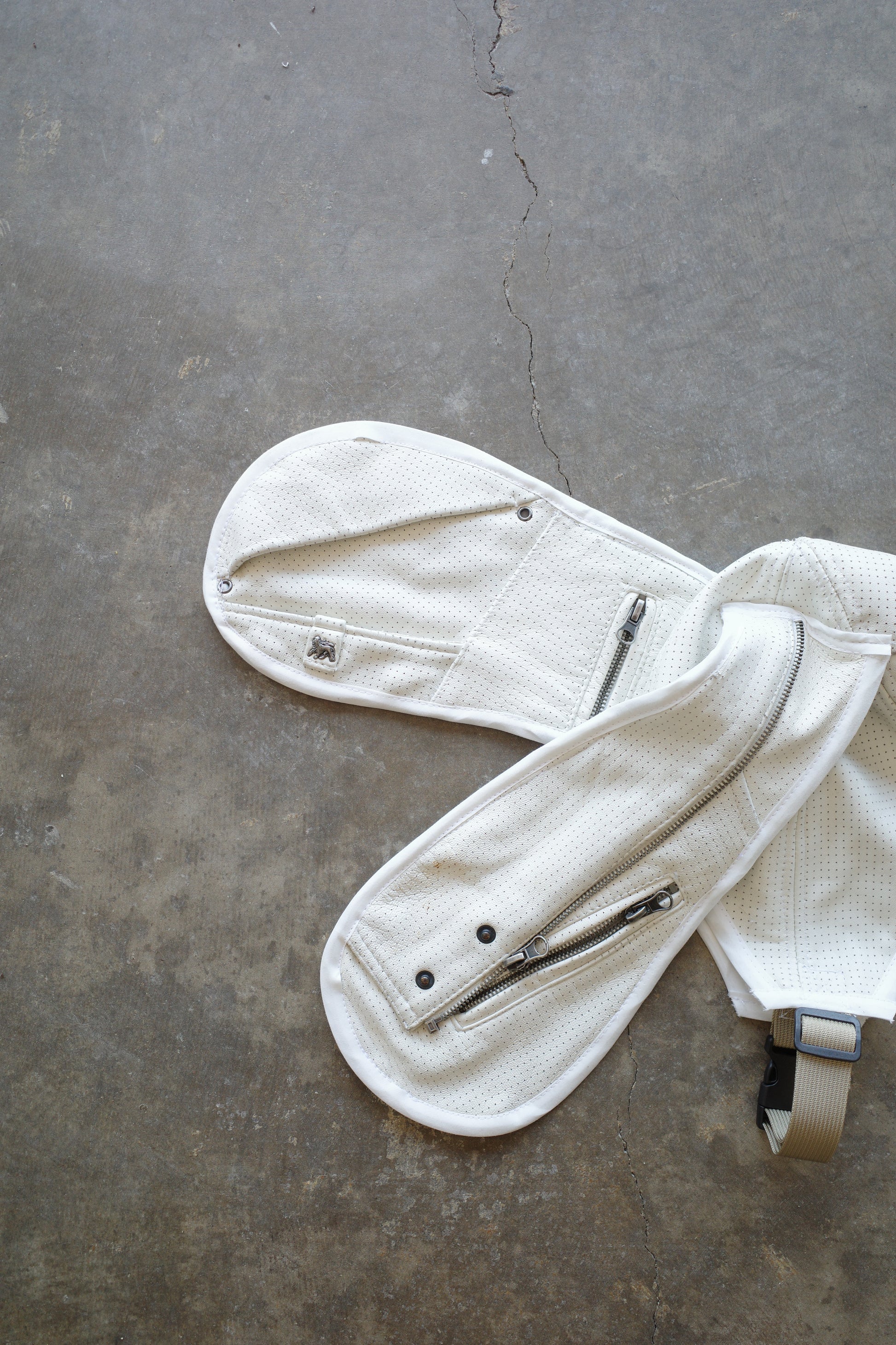 Upcycled. made with vintage white leather biker jackets
