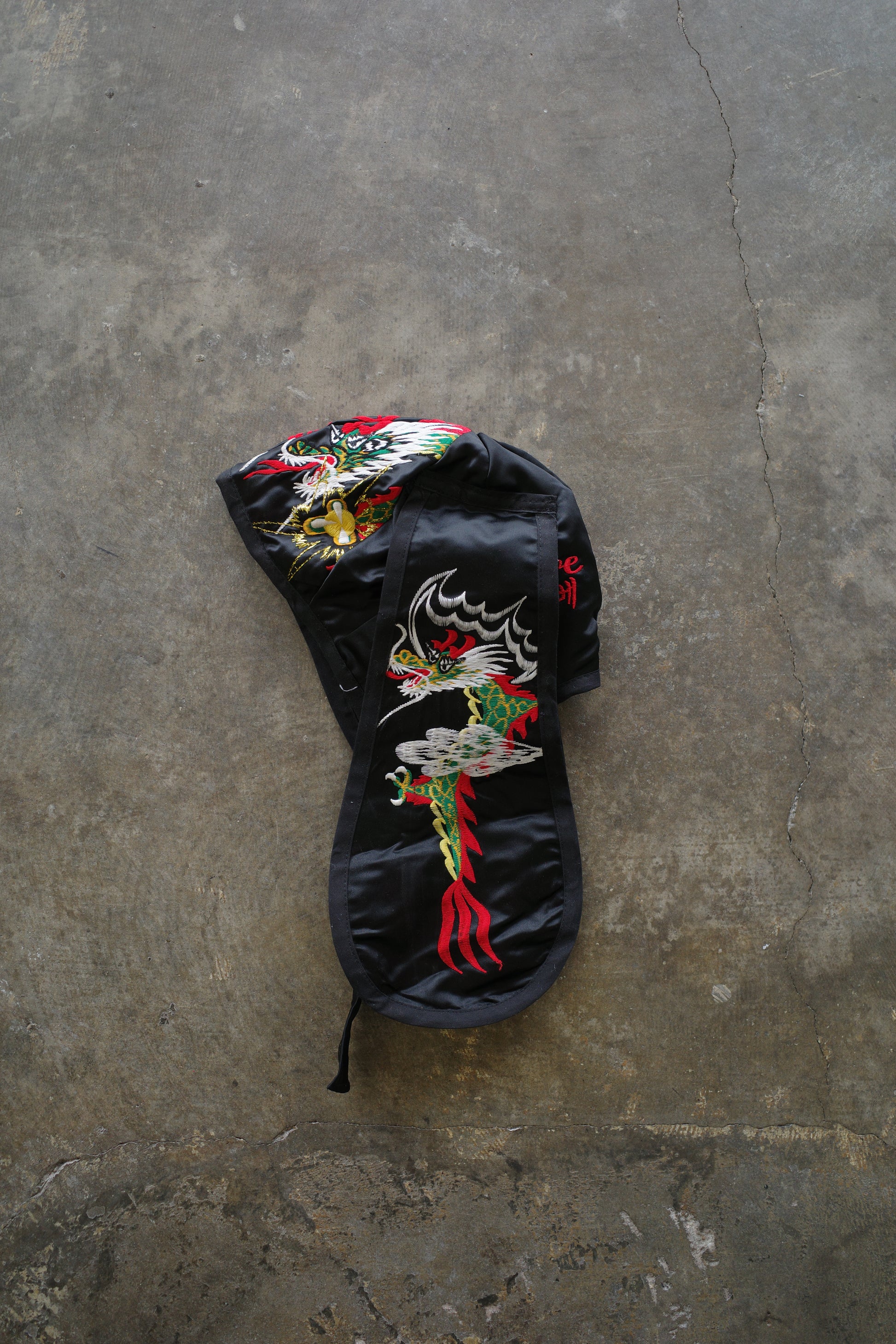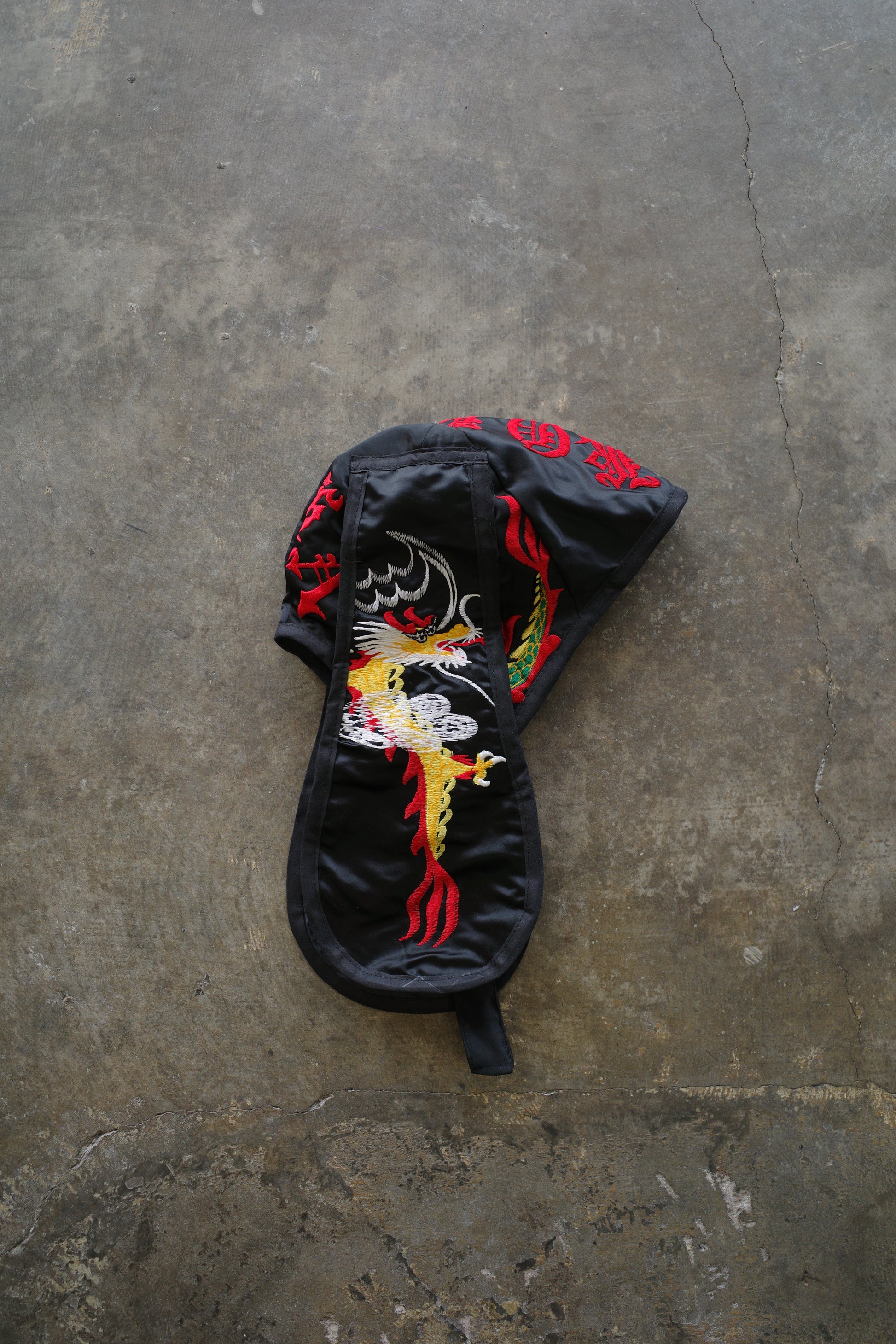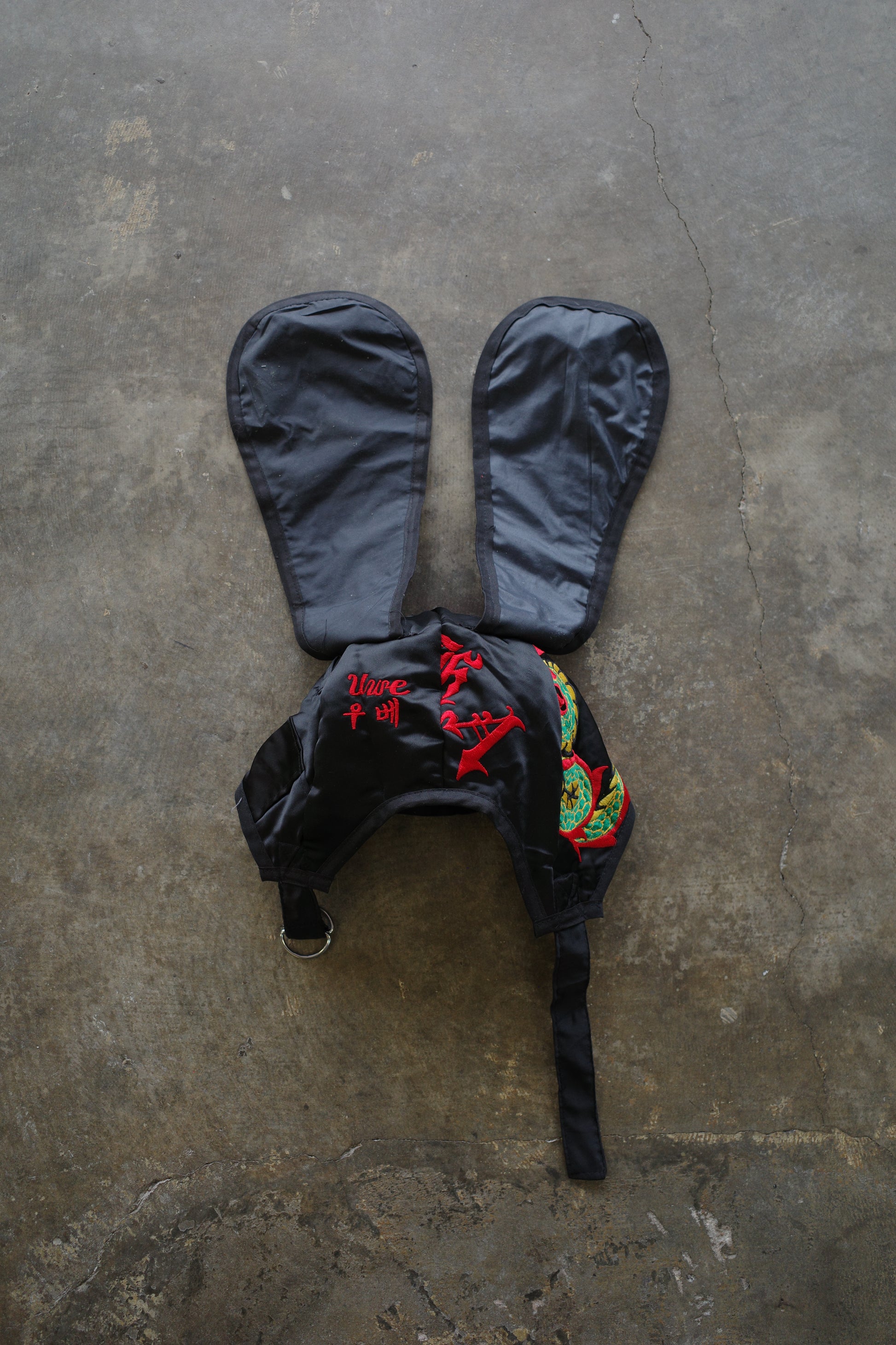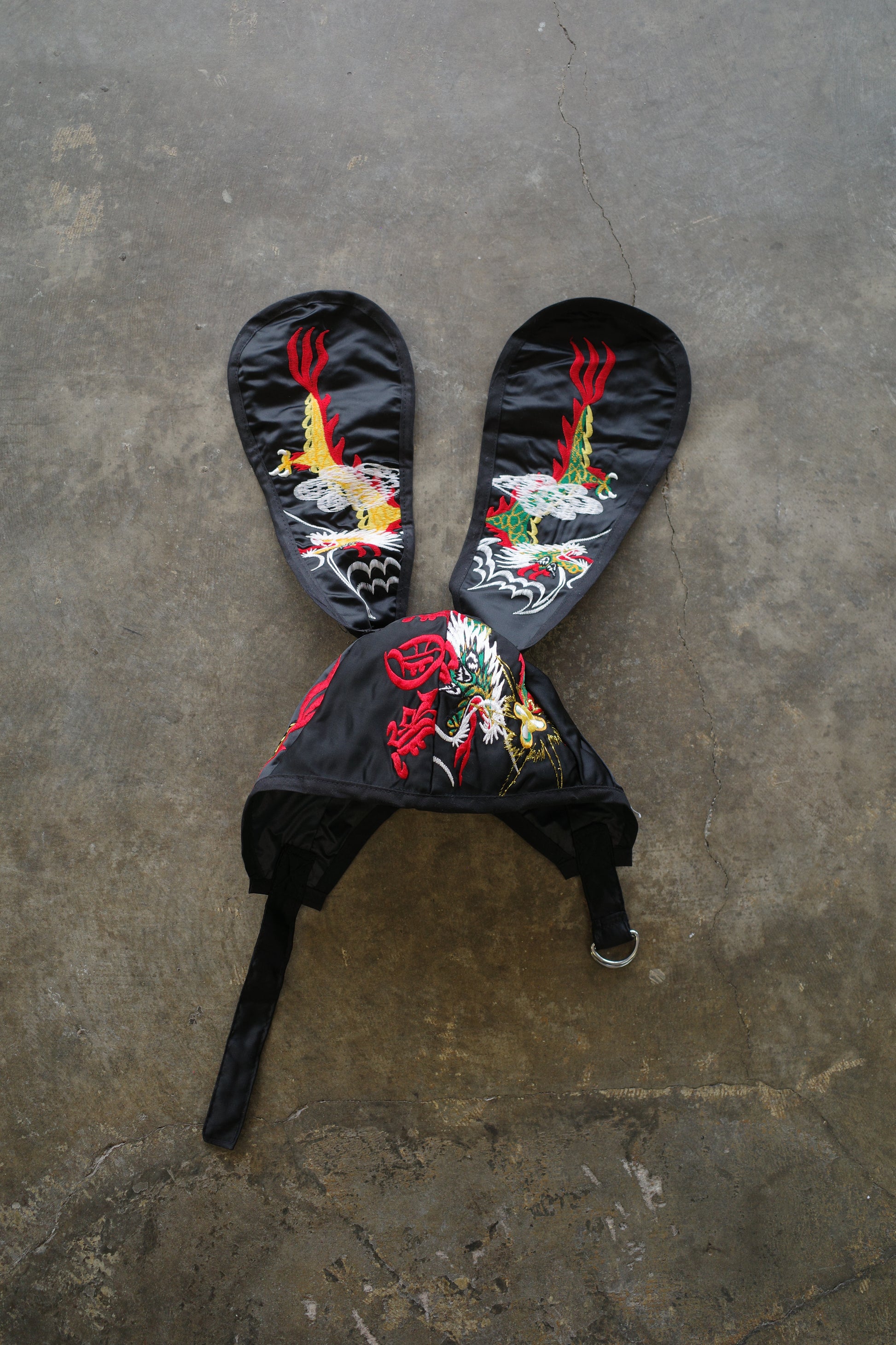 nag nag Bunny Ear Hat made with vintage night robe w Dragon stitches