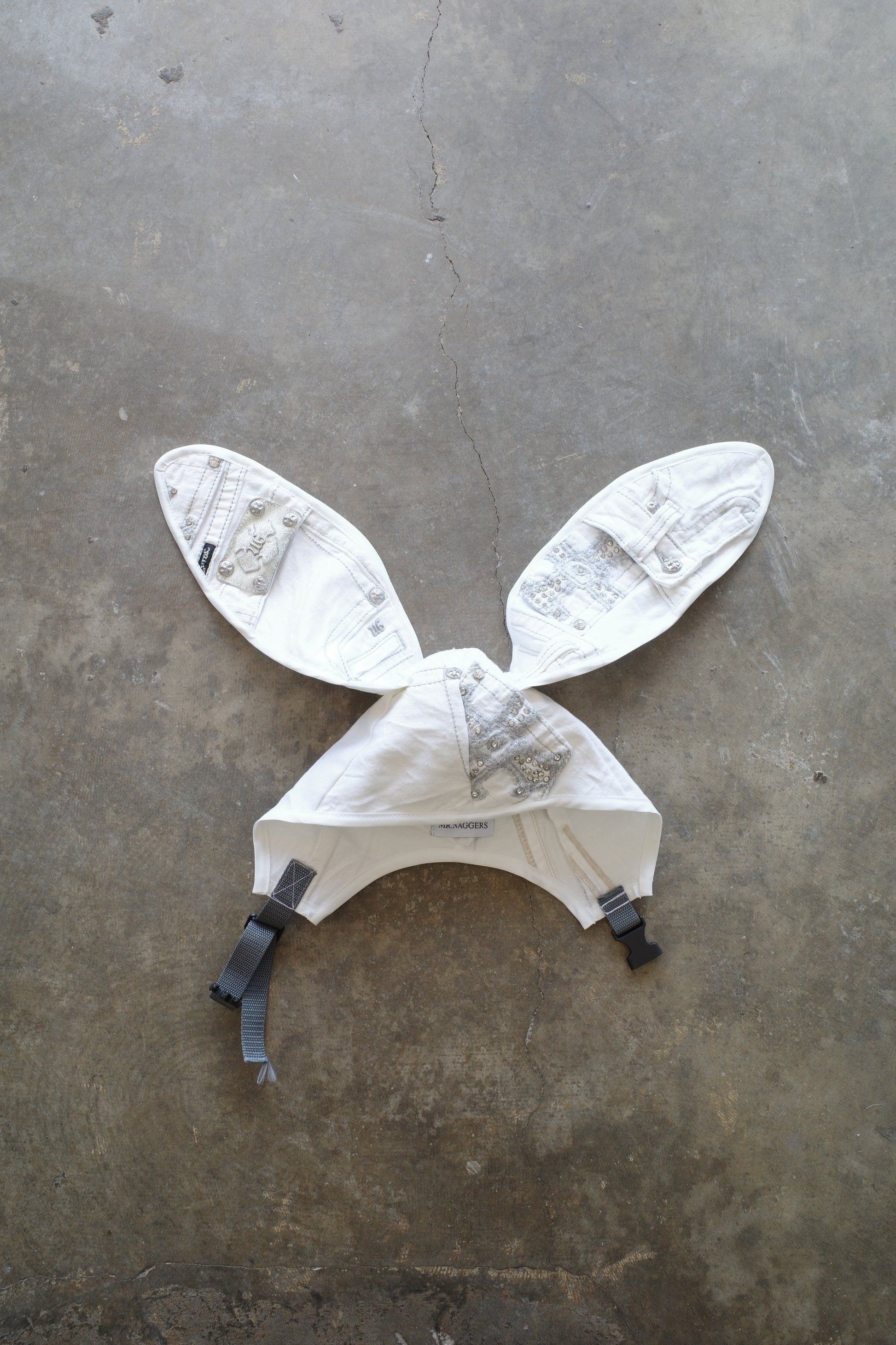 nag nag Bunny Ear Hat made with vintage Y2K shiny jeans W