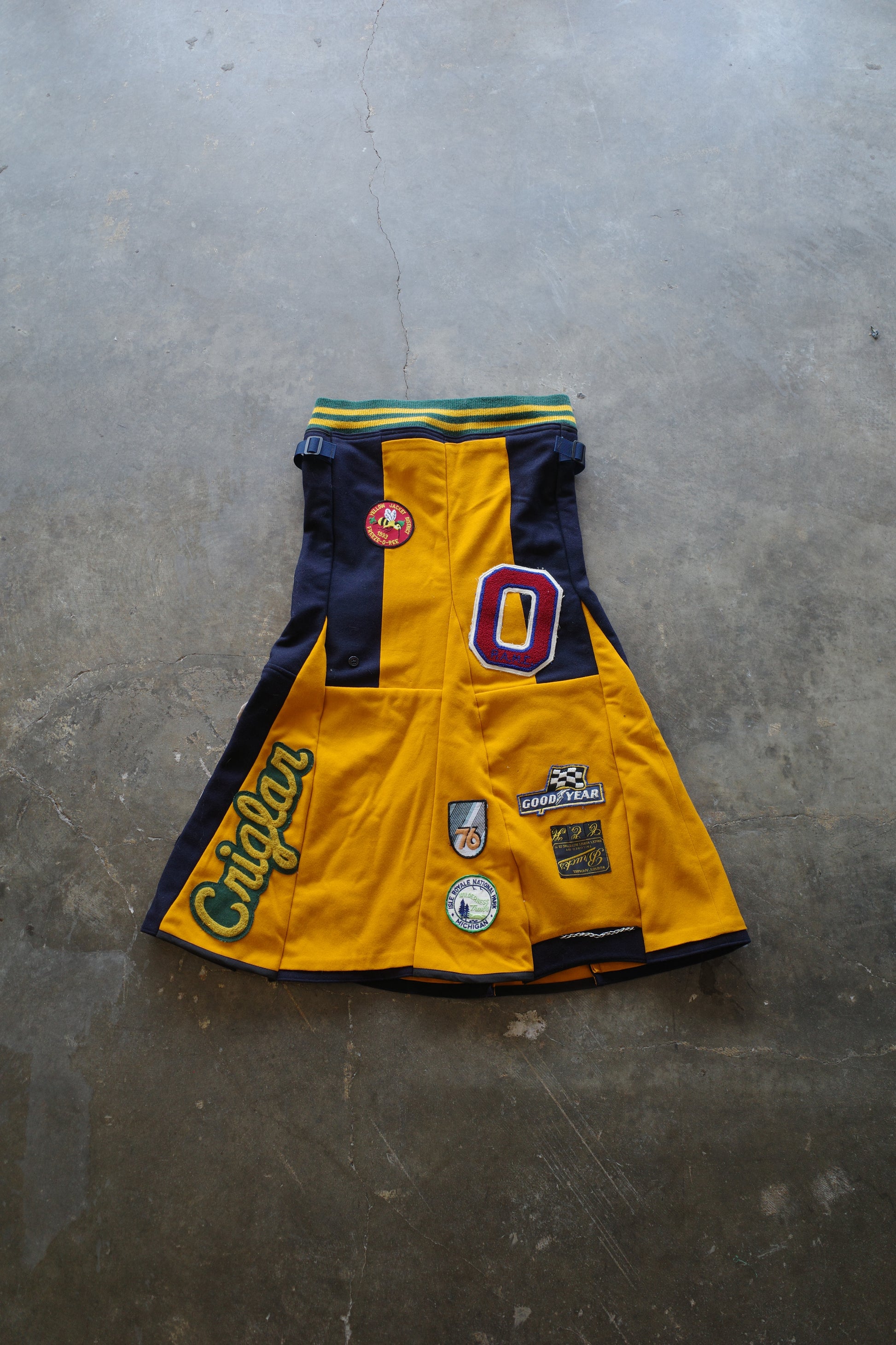 Paneled skirt w vintage patches/ made from vintage us.military issues sailor top and cape