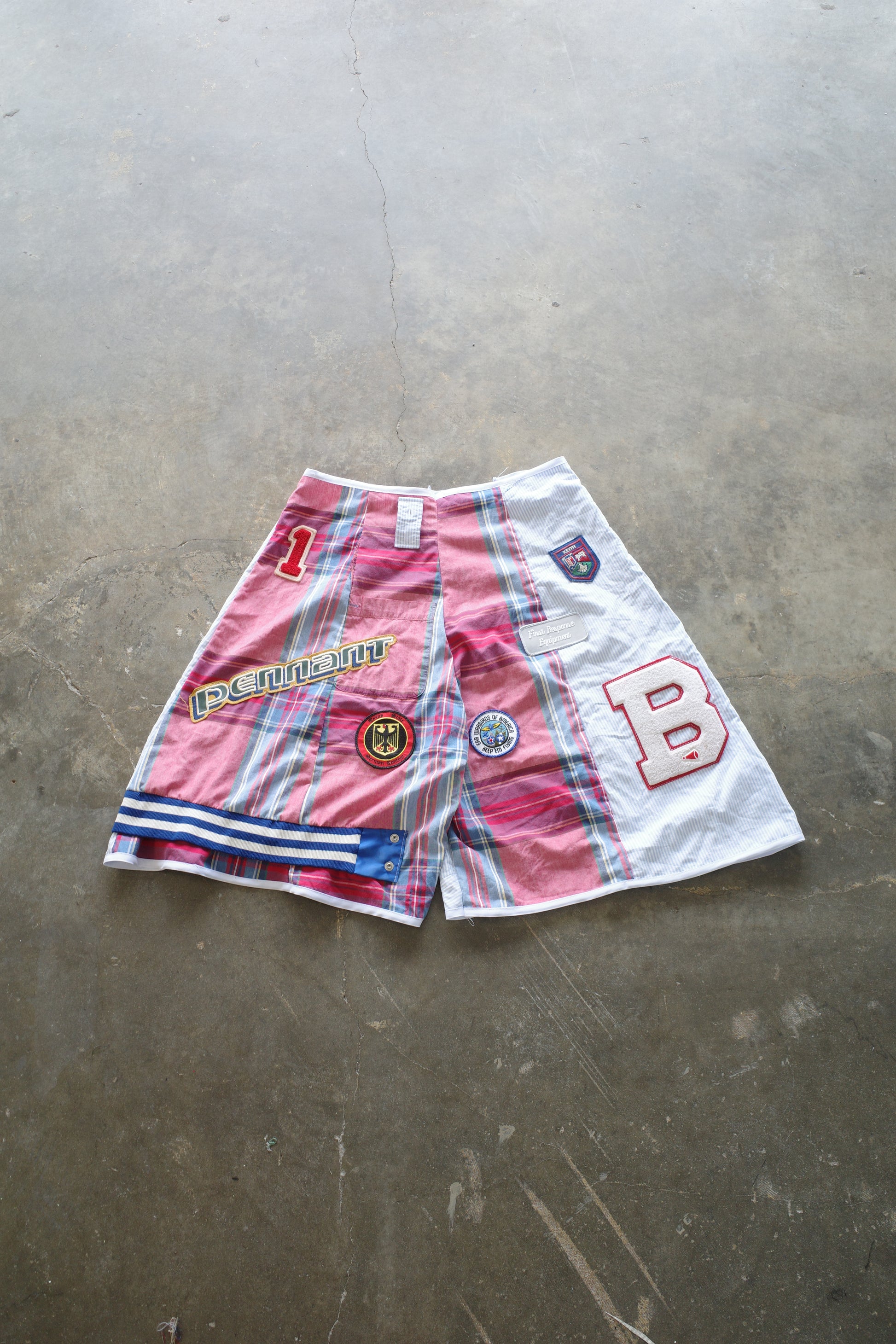 Patched Baggy Shorts (36)/made w vintage striped shirt and vintage patches