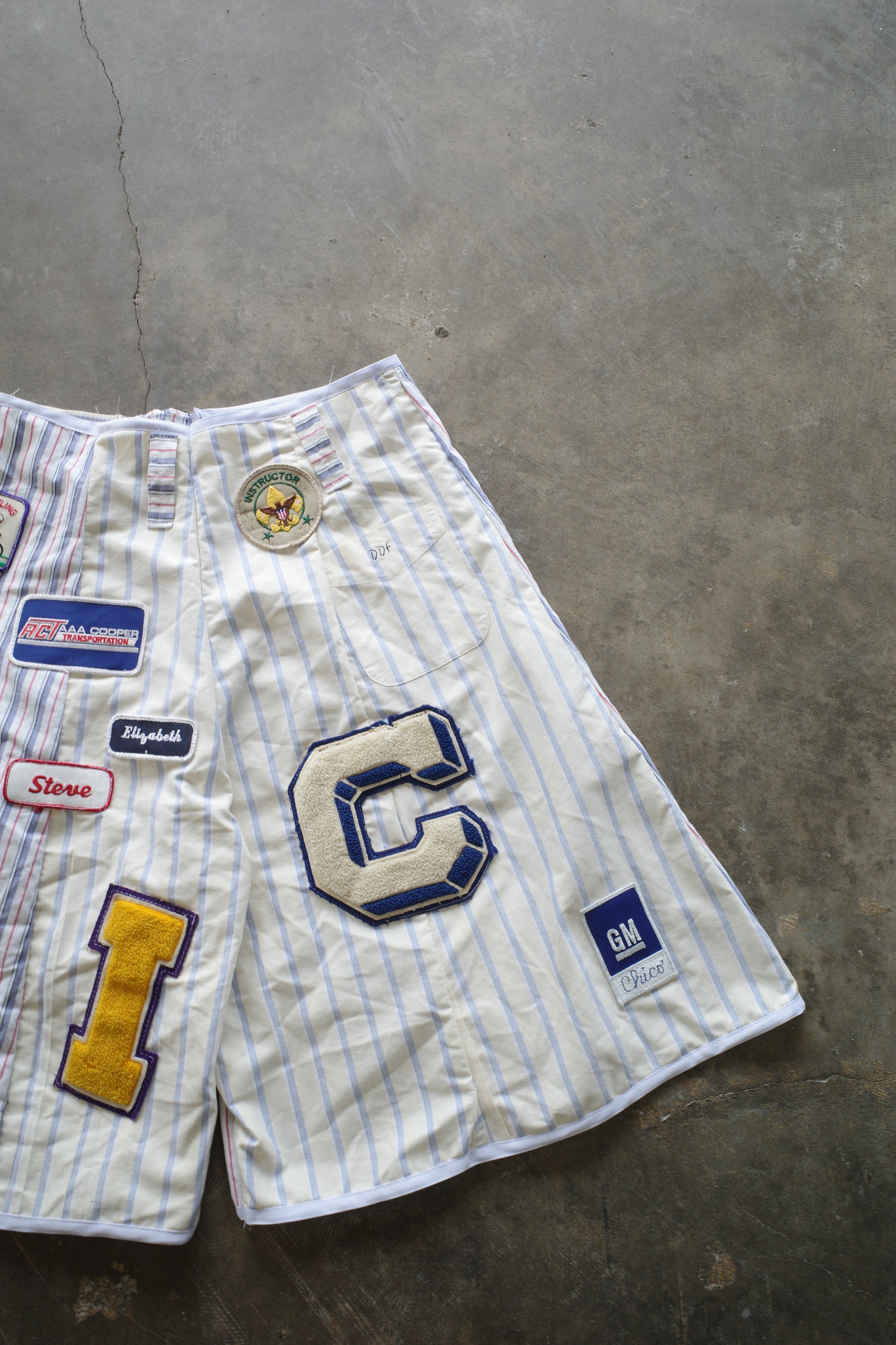 Patched Baggy Shorts (32)/made w vintage striped shirt and vintage patches