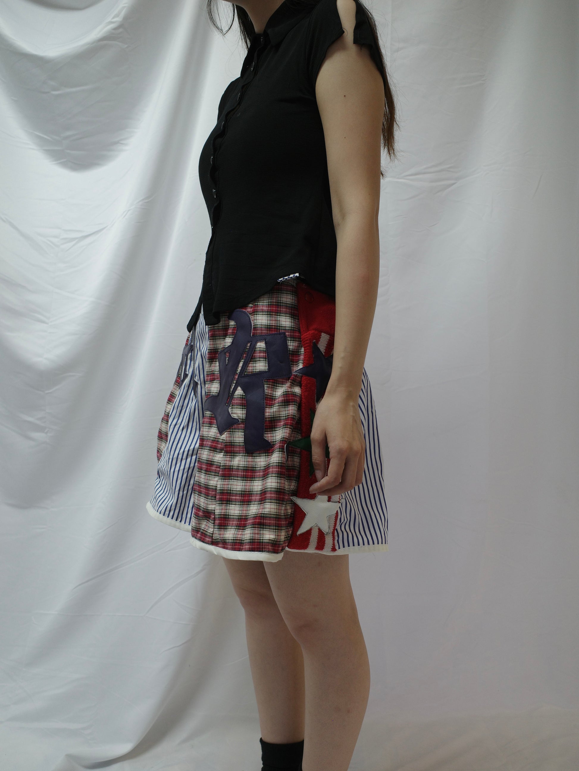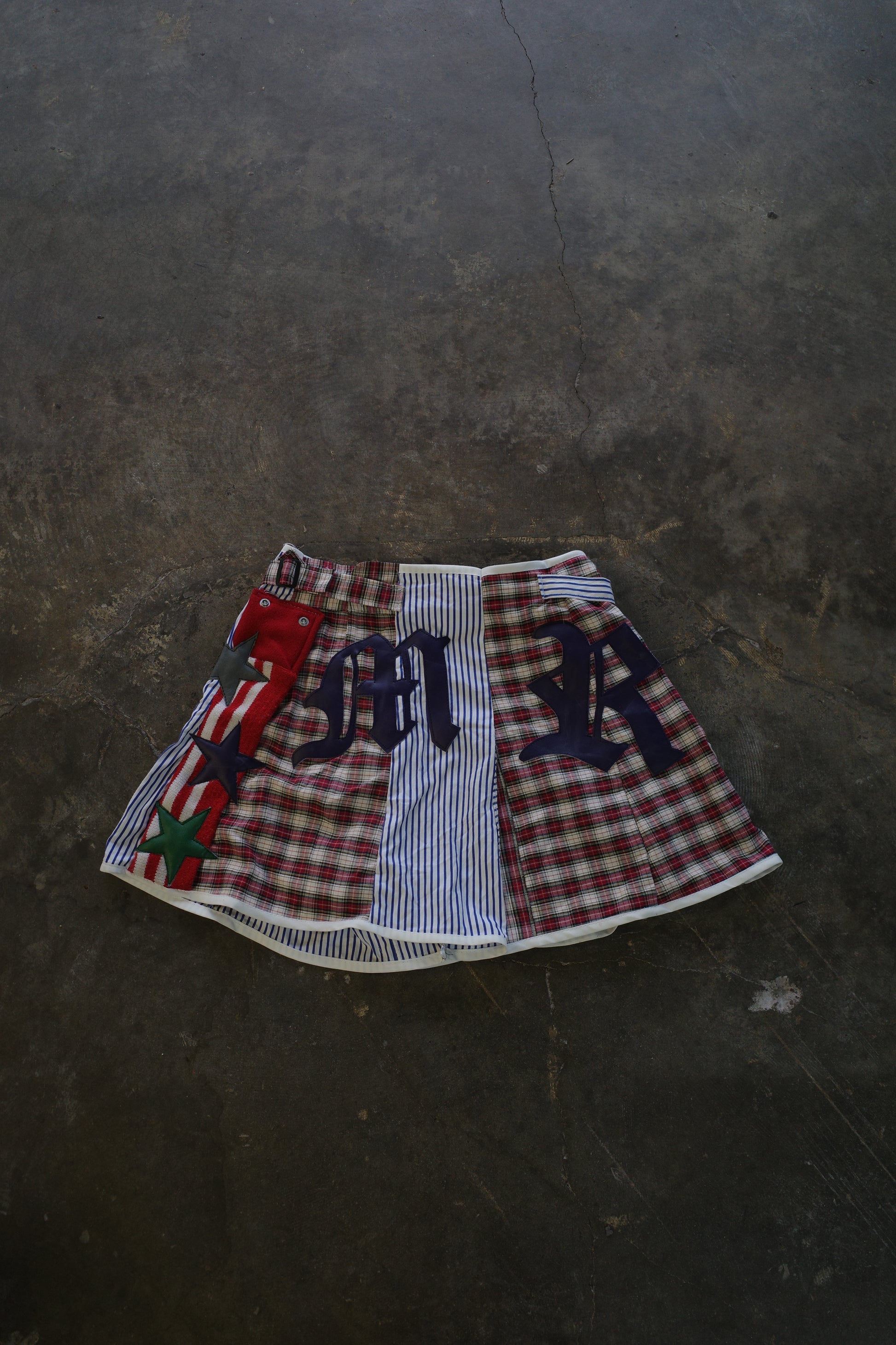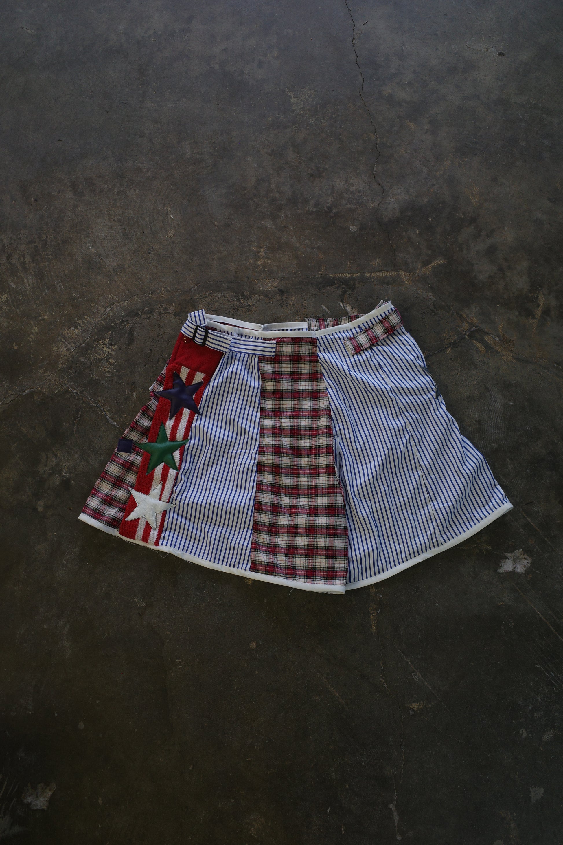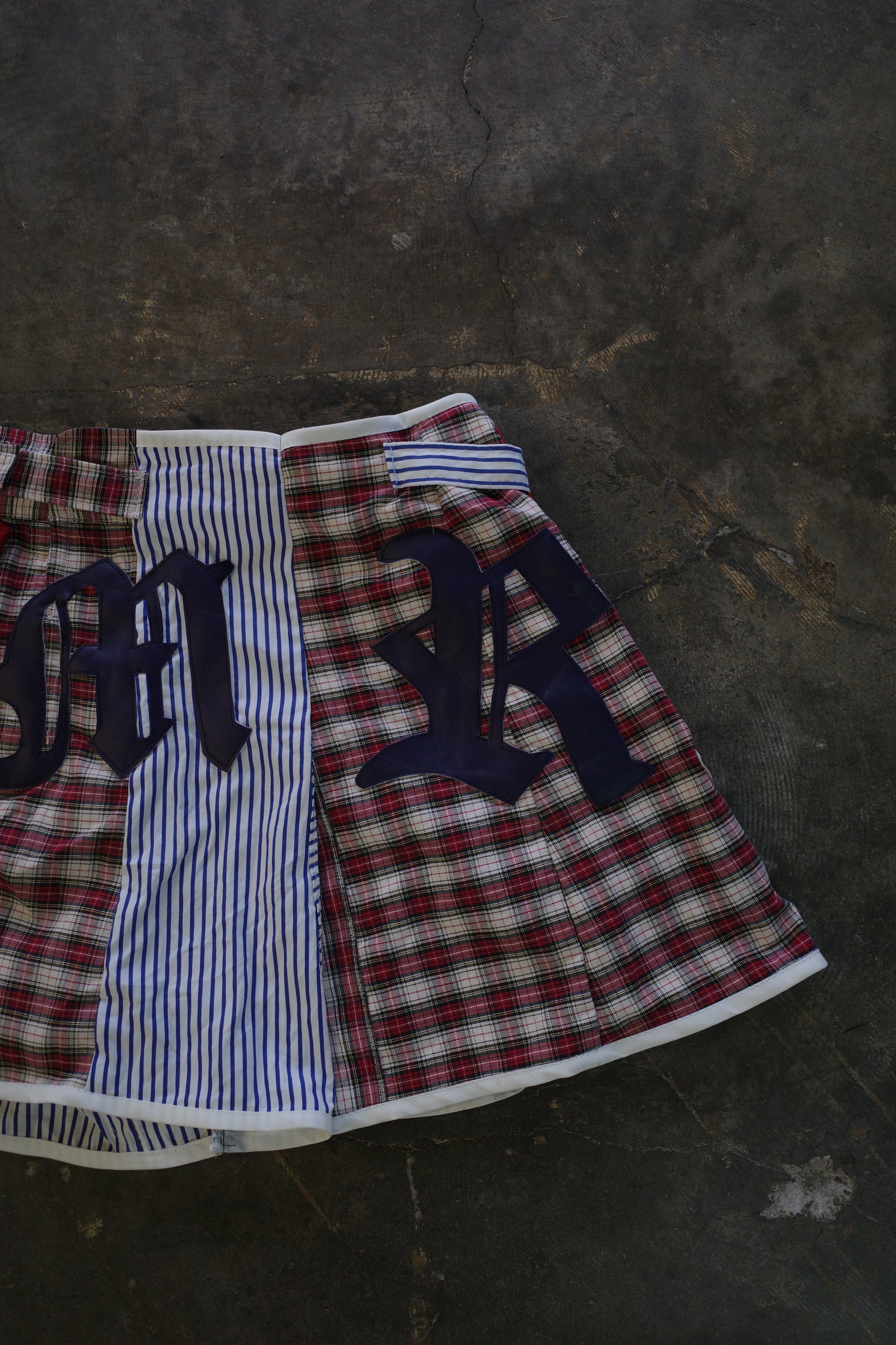 "The MR.Shorts"made with vintage stripe shirt & 3R. original leather patch
