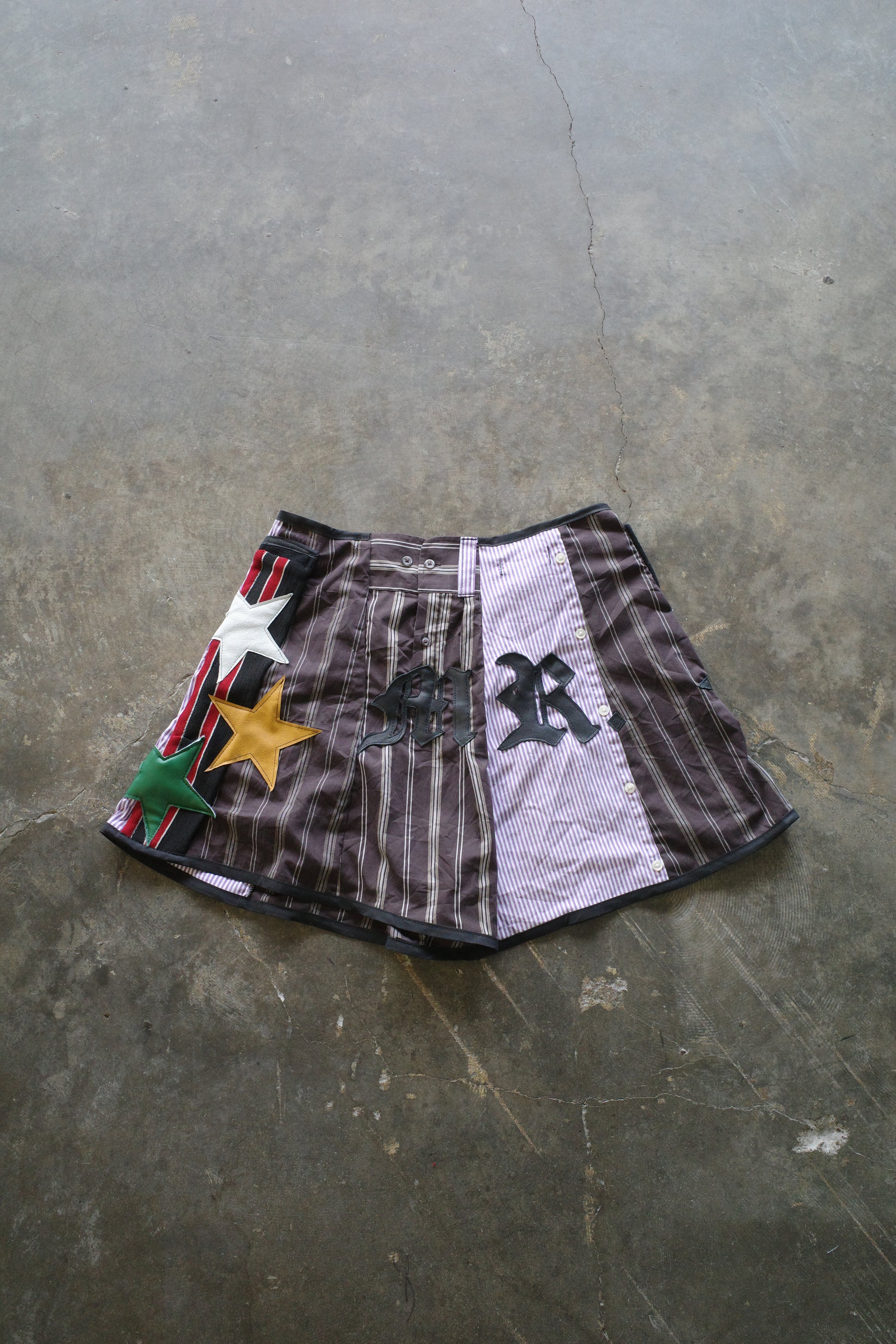 "The MR.Shorts"made with vintage stripe shirt & 3R. original leather patch