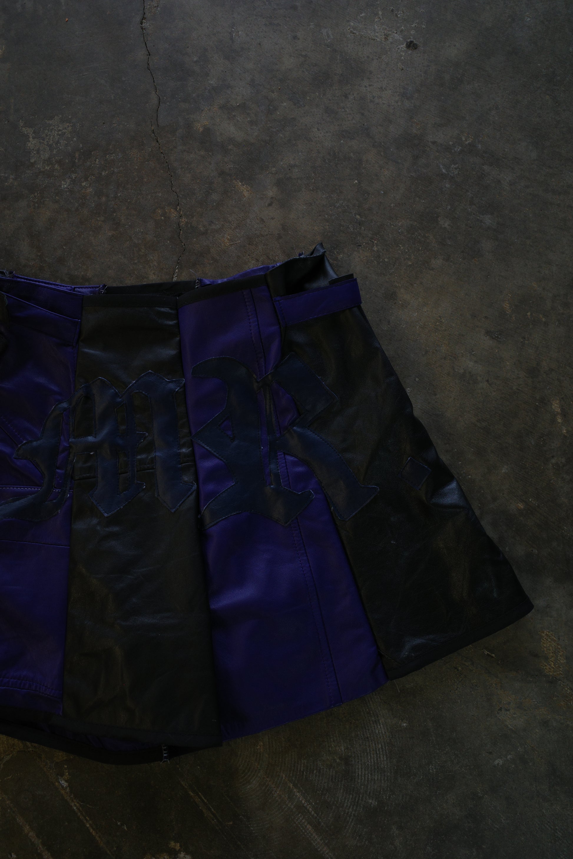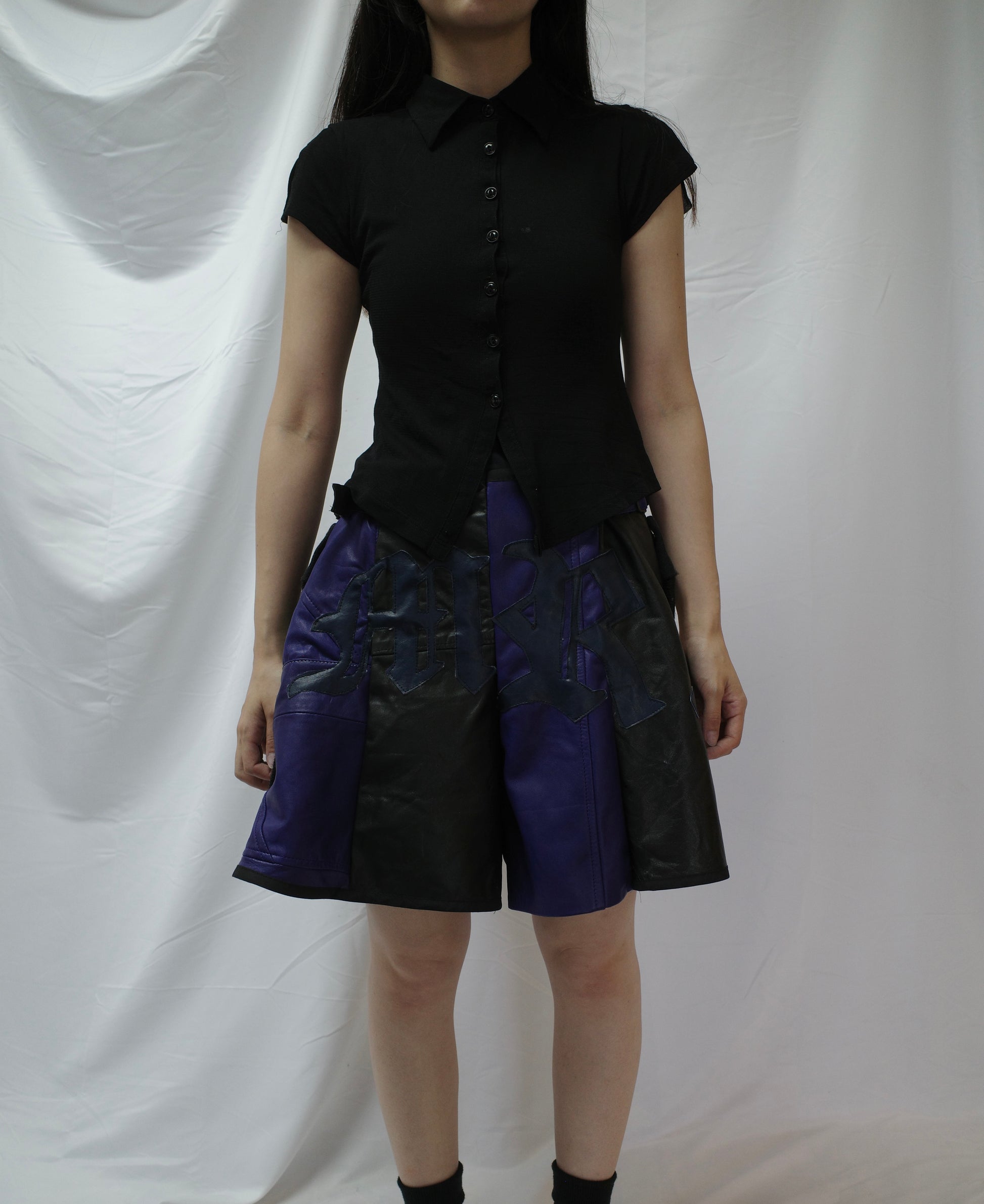 "The MR.Shorts"made with vintage Leather biker jacket & 3R. original leather patch