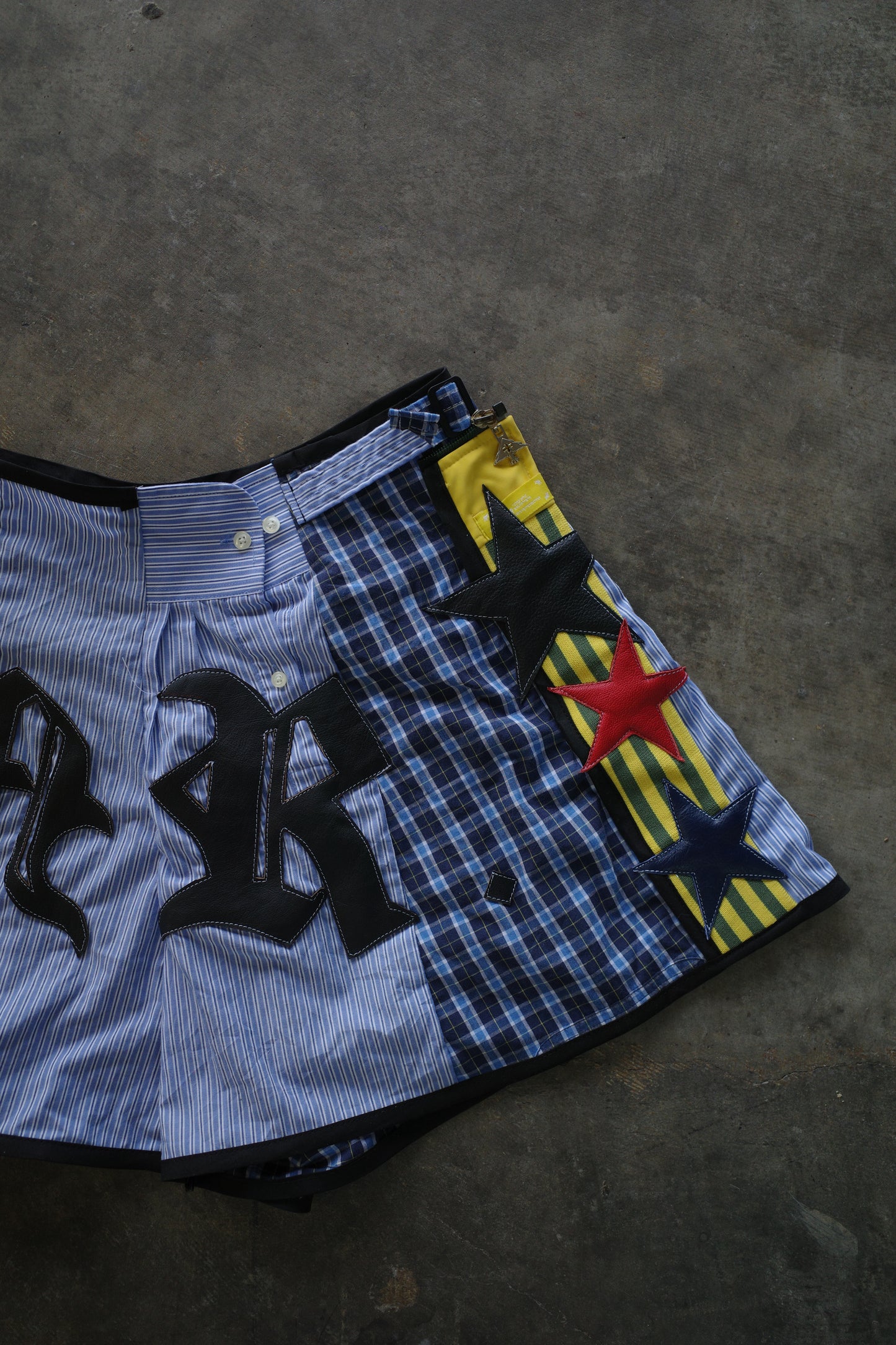 "The MR.Shorts"made with vintage stripe shirt & 3R. original patch