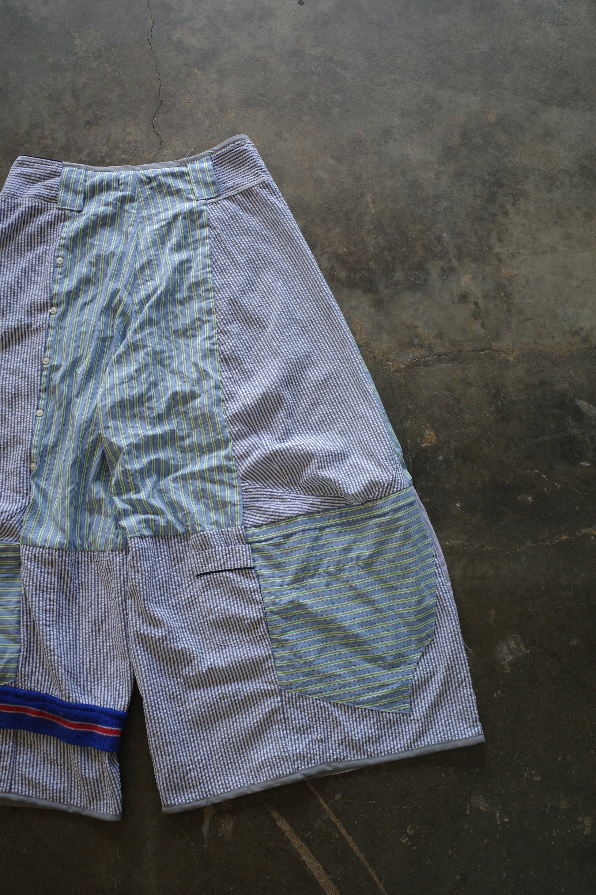 Wide Legged Patched Pants(L) / made with vintage mens striped shirt w vintage patches