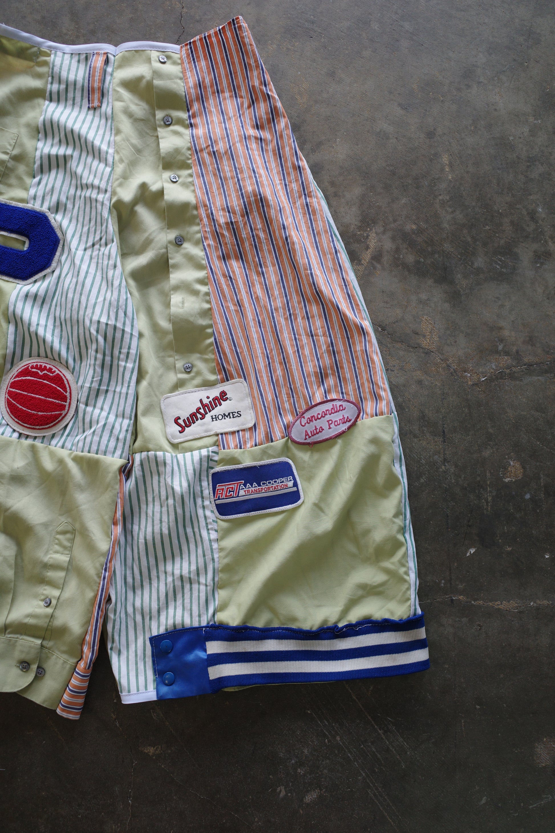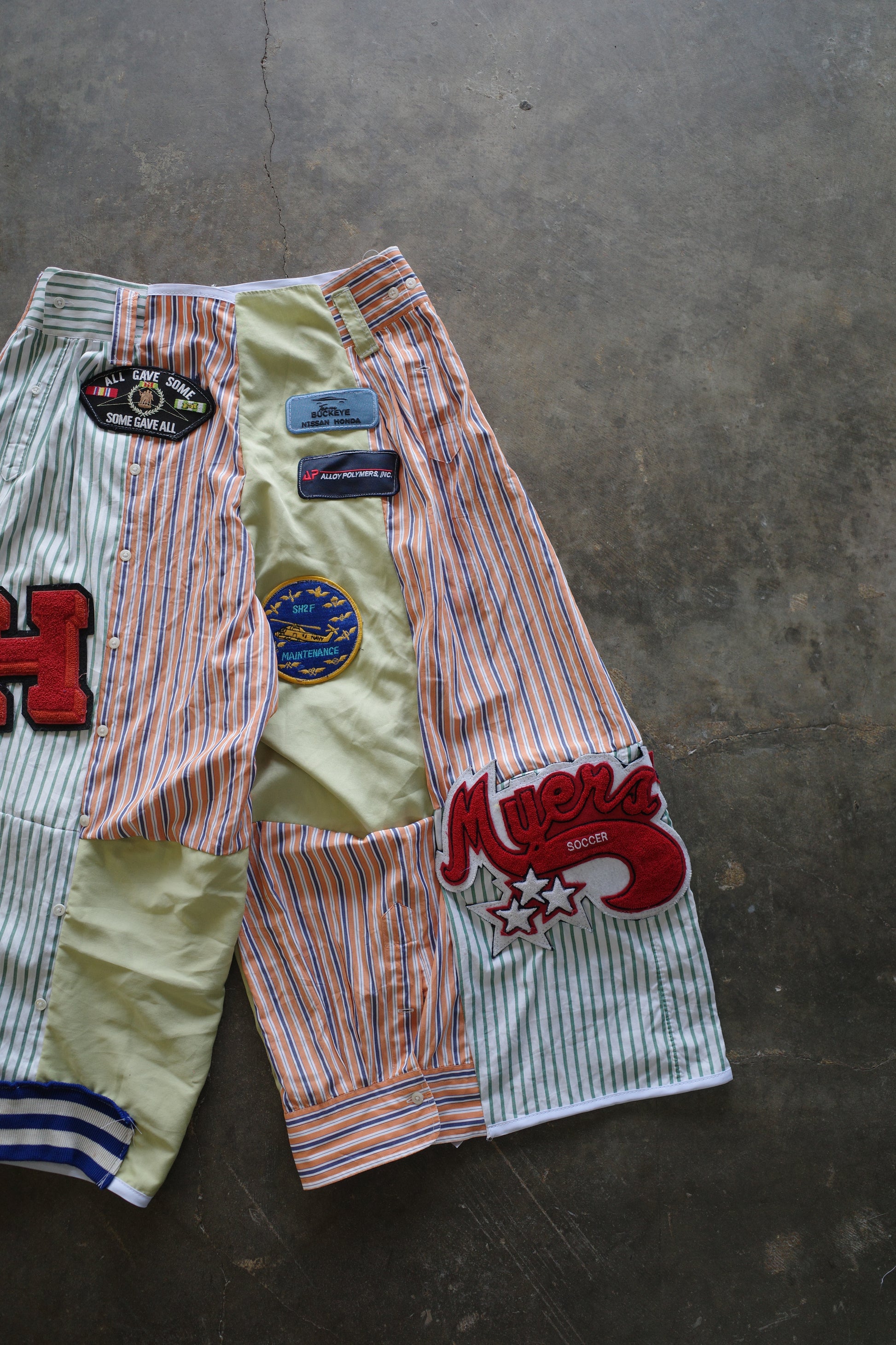 made with vintage mens striped shirt w vintage patches)))made by 3R